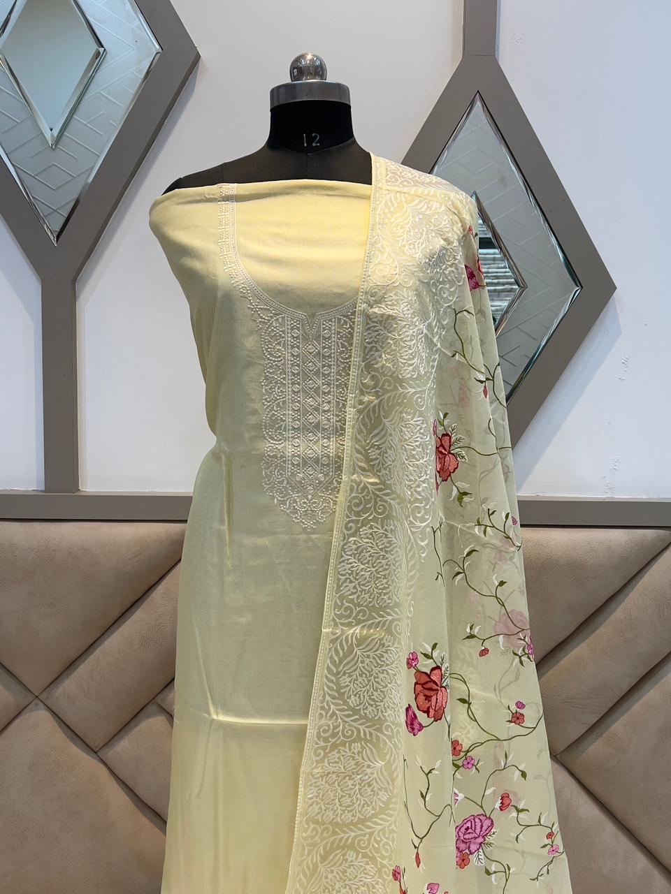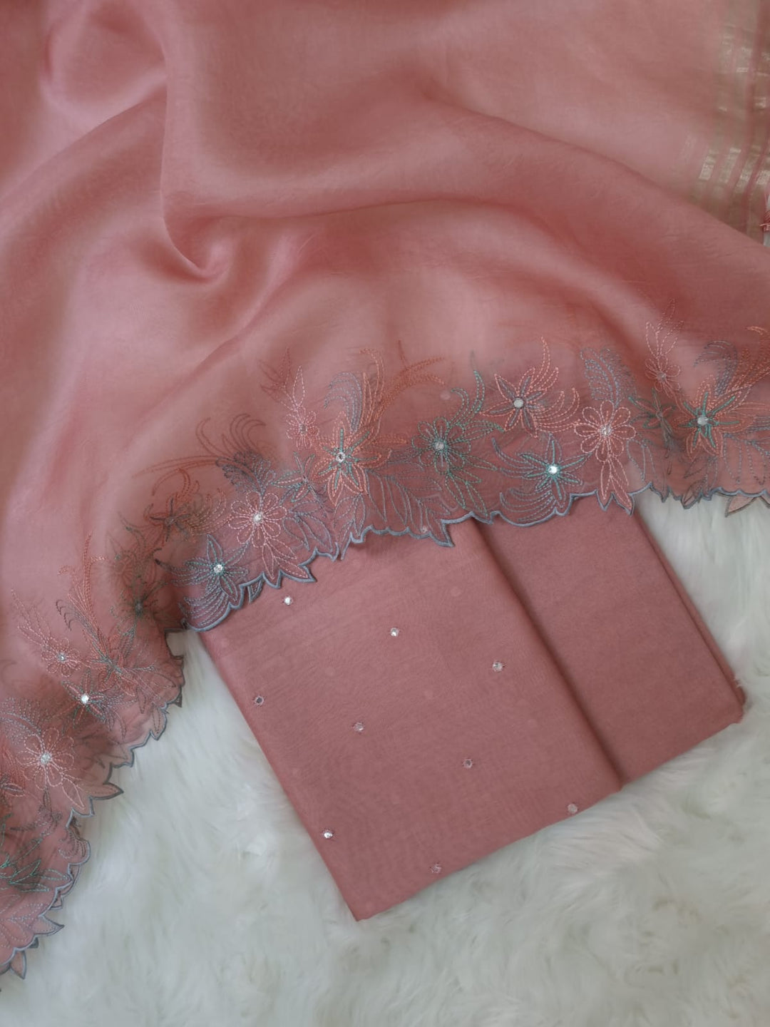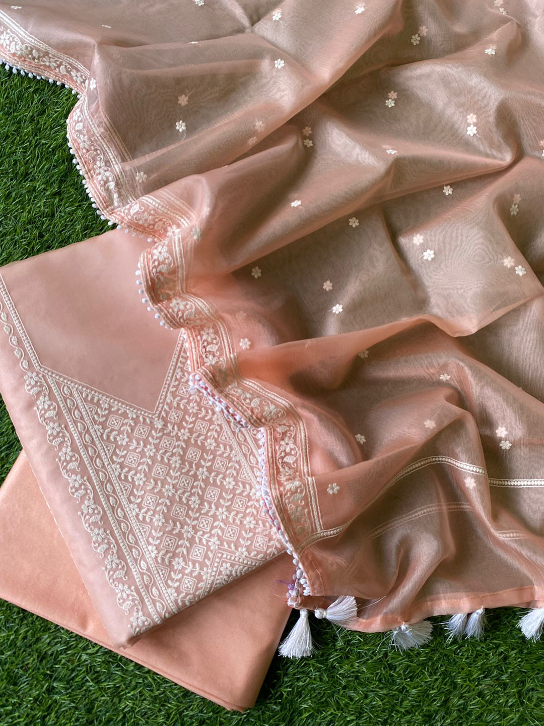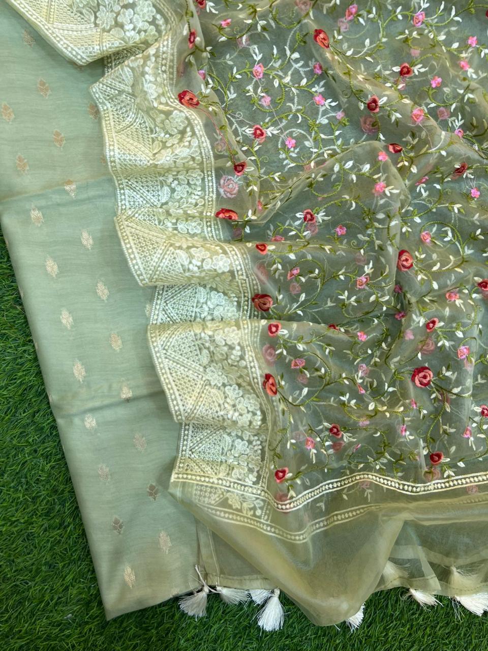 Elevate your ethnic wardrobe with our exclusive range of Banarasi Organza Silk Suits, crafted to embody timeless beauty and graceful luxury. Whether you’re dressing up for a wedding function, a traditional puja, or a festive celebration, these unstitched suits are designed to make a lasting impression. The ethereal sheen of organza, when combined with the richness of traditional Banarasi weaves, creates a silhouette that is both elegant and festive.