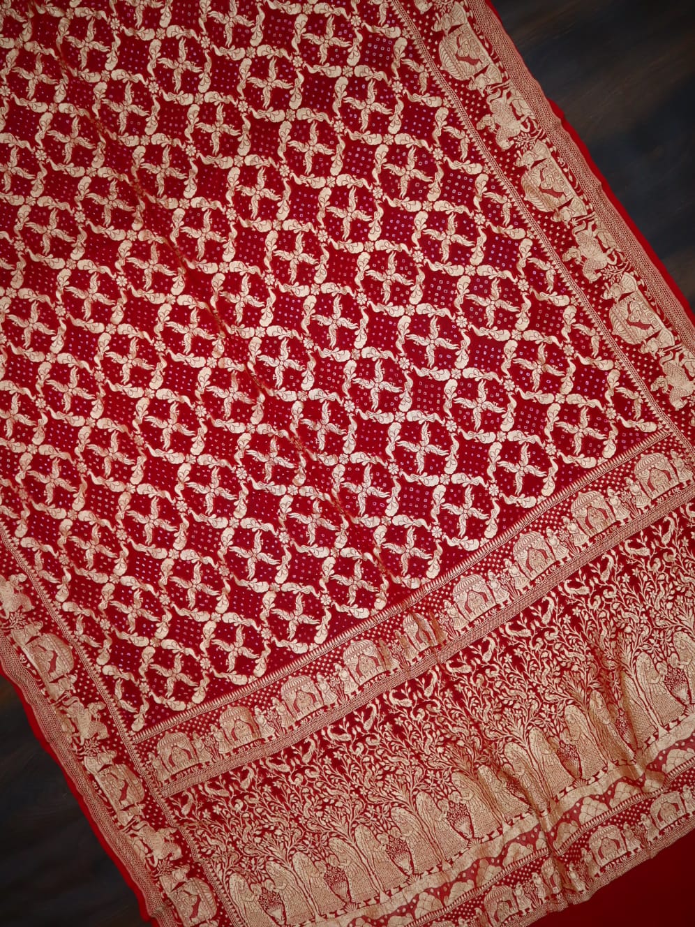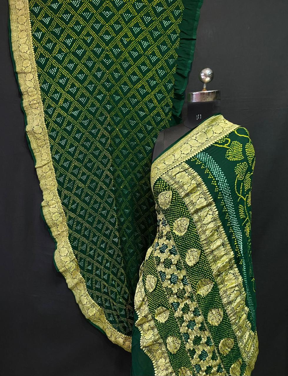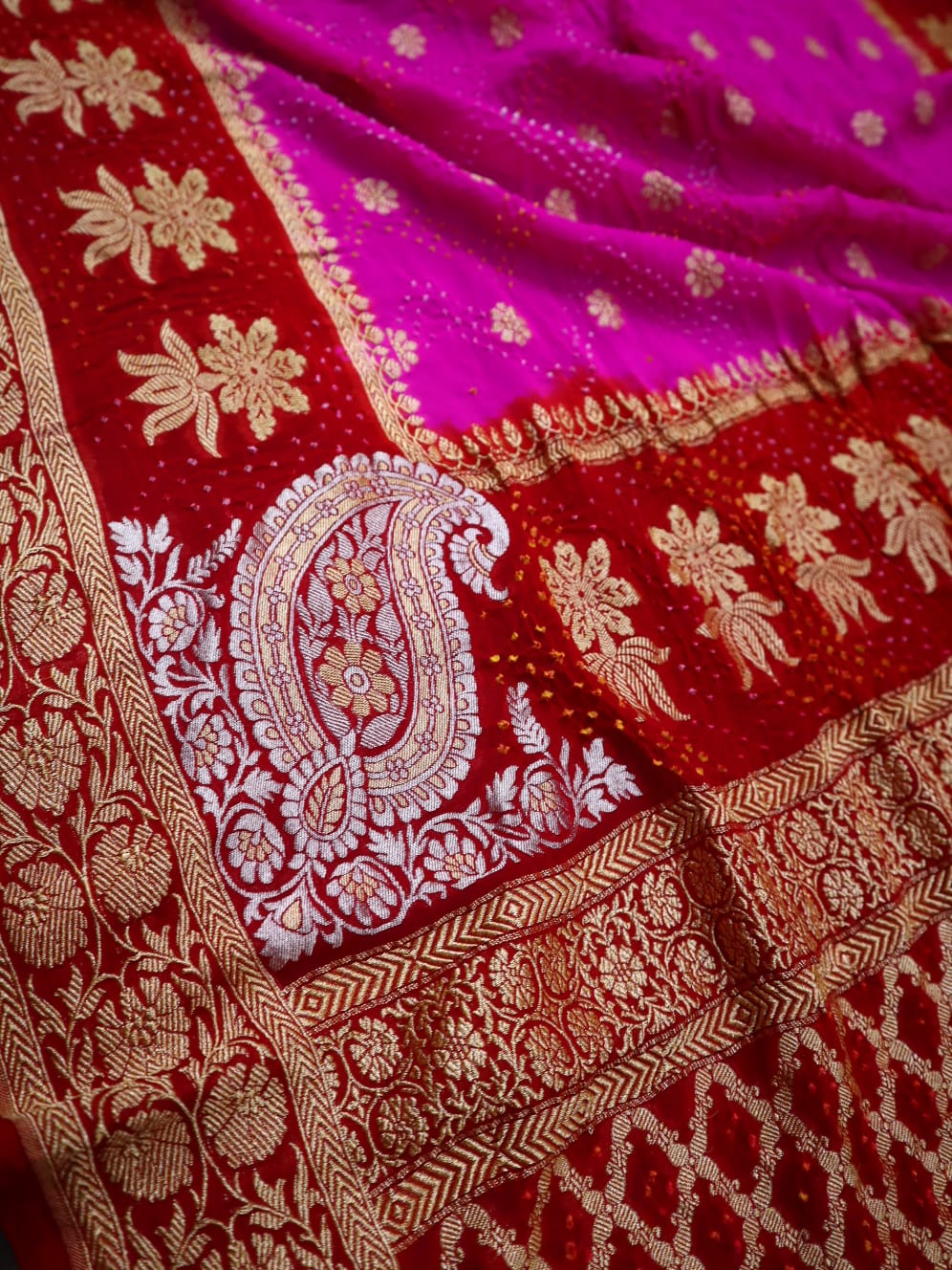 Bandhani and Garchola sarees make for a perfect ensemble for every special occasion, be it a puja at home, your best friends’ wedding, or a festival. This craft form has a timeless appeal attached to it which makes it a must-add to every bride’s trousseau. Pick your favorite from our collection of intricately designed and heavily embellished Bandhani and Garchola sarees of opulent fabric.