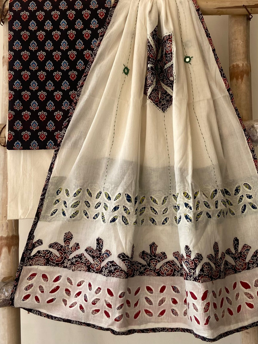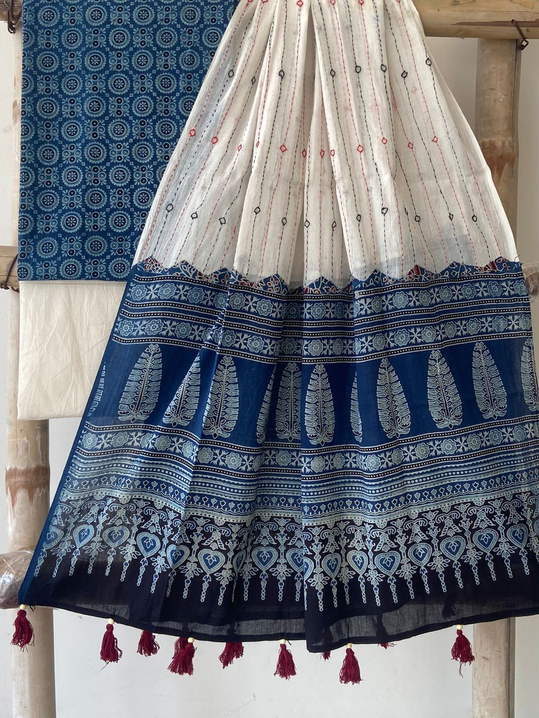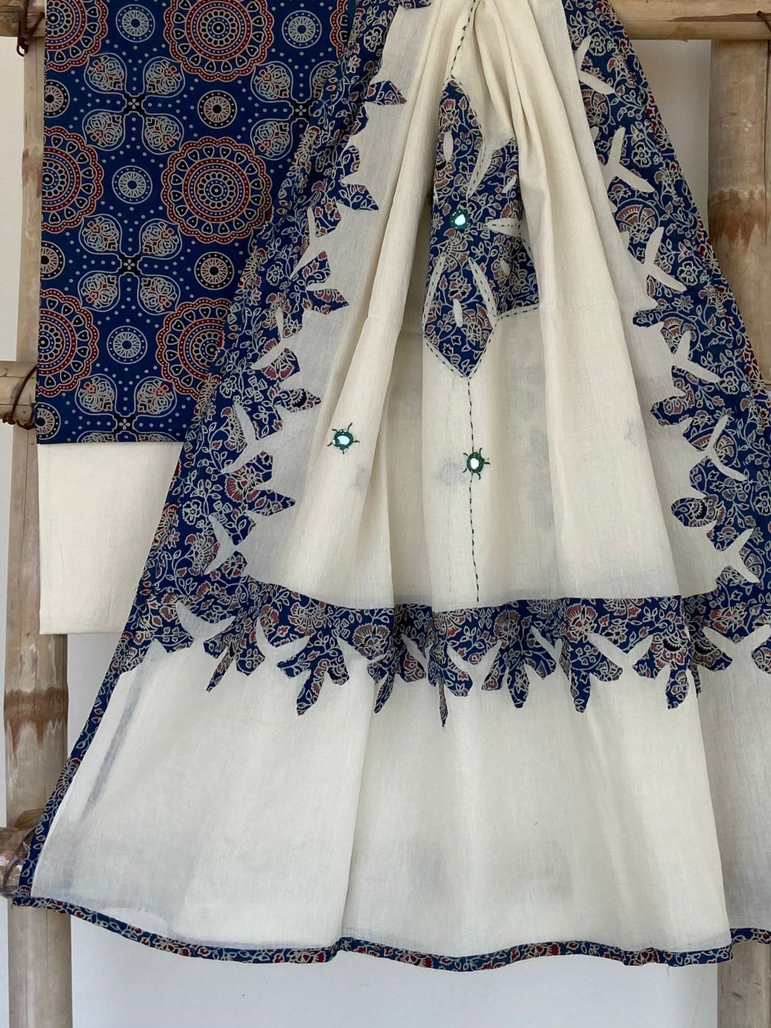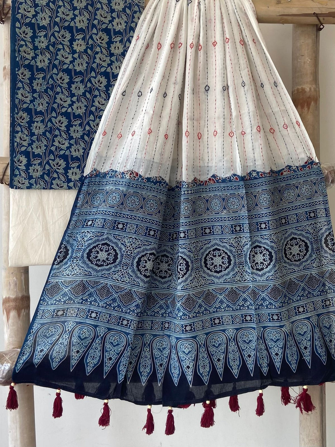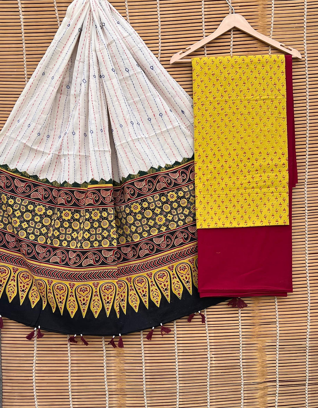 Fab-Persona prints Ajrakh on high-quality pure cotton and modal silk, as per tradition. Cotton Unstitched suits fabric, which is popular and best-selling, is chosen for its durability, softness, and breathability. It is also the best fabric for retaining the vibrancy of natural dyes and patterns.