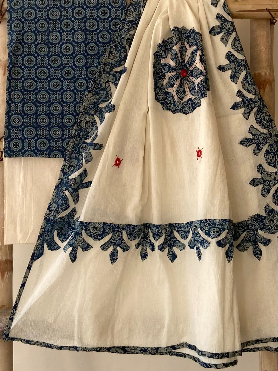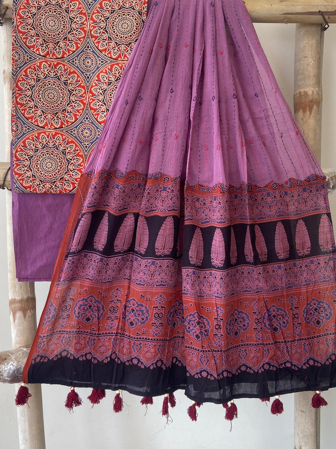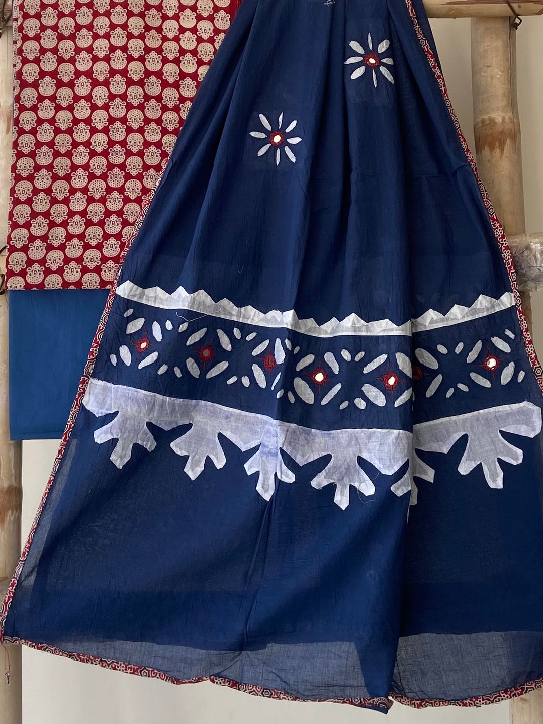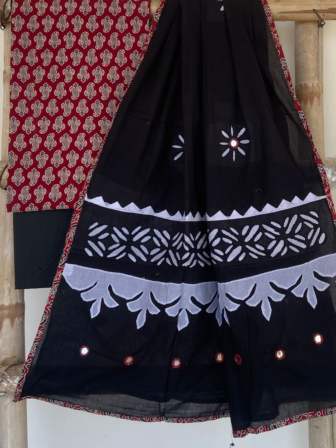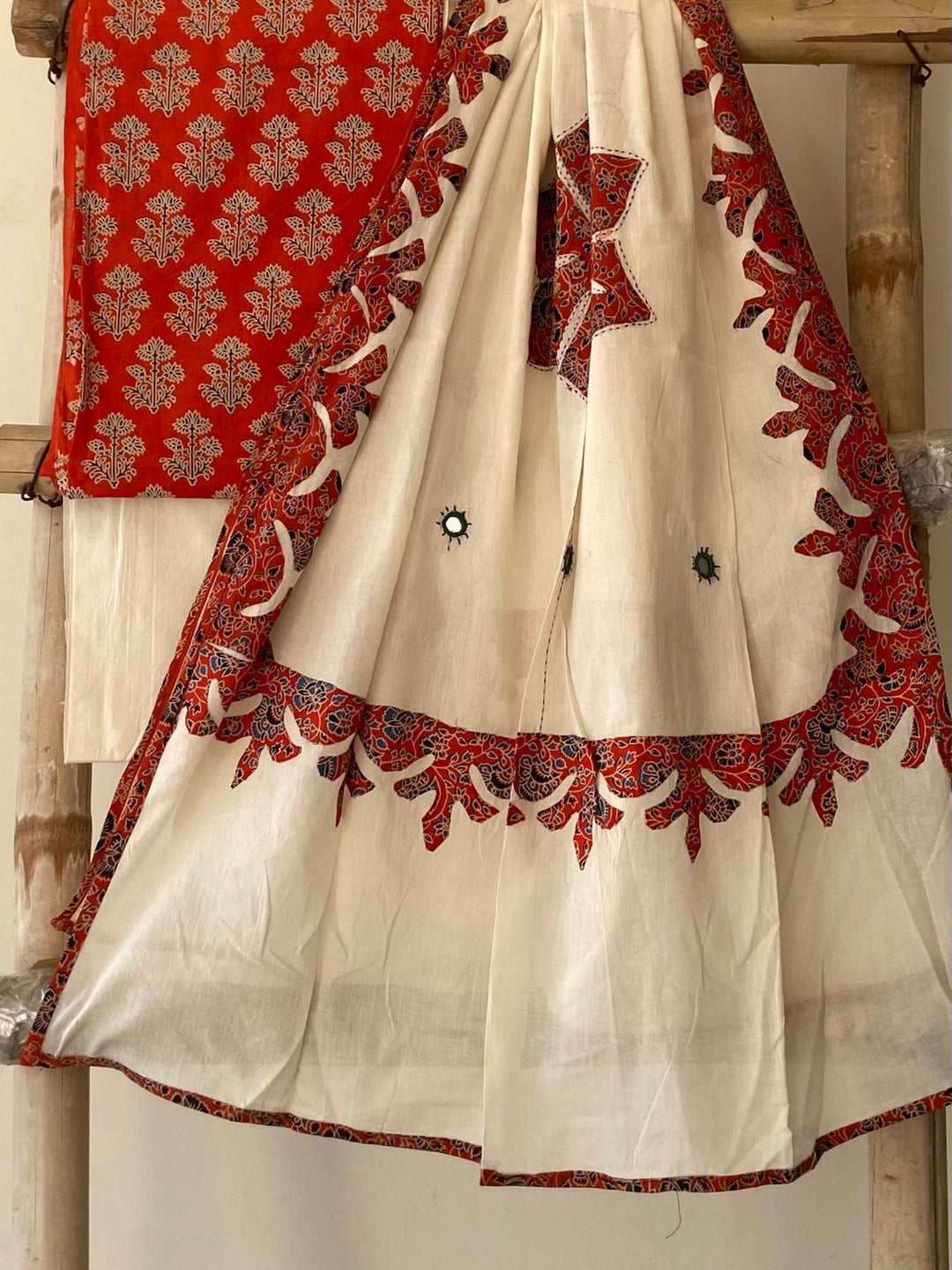 Fab-Persona prints Ajrakh on high-quality pure cotton and modal silk, as per tradition. Cotton Unstitched suits fabric, which is popular and best-selling, is chosen for its durability, softness, and breathability. It is also the best fabric for retaining the vibrancy of natural dyes and patterns.