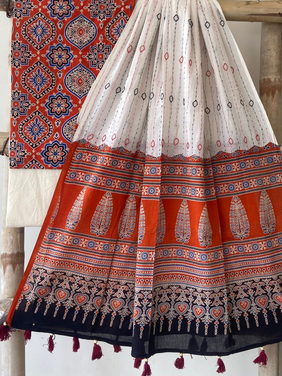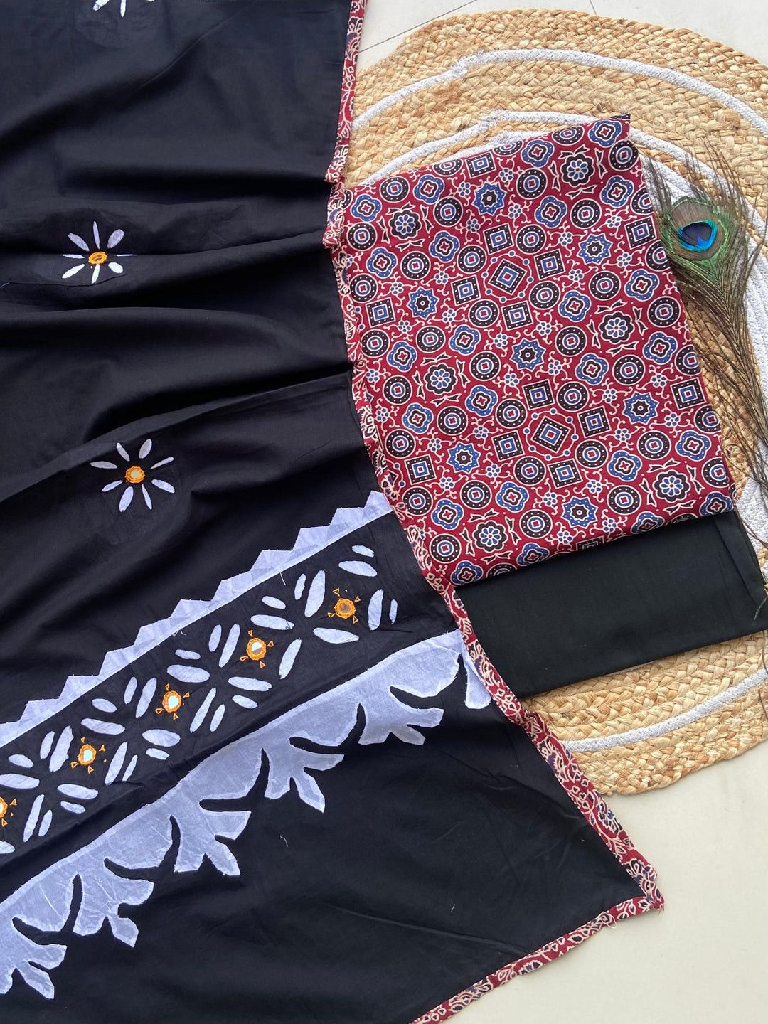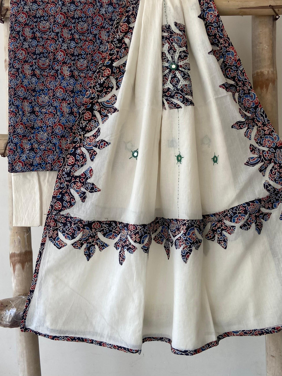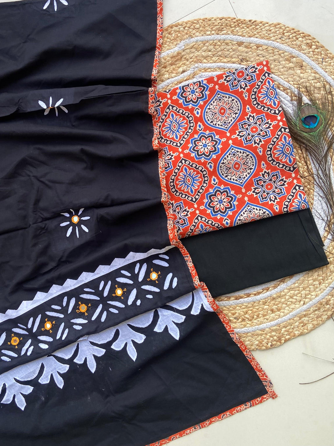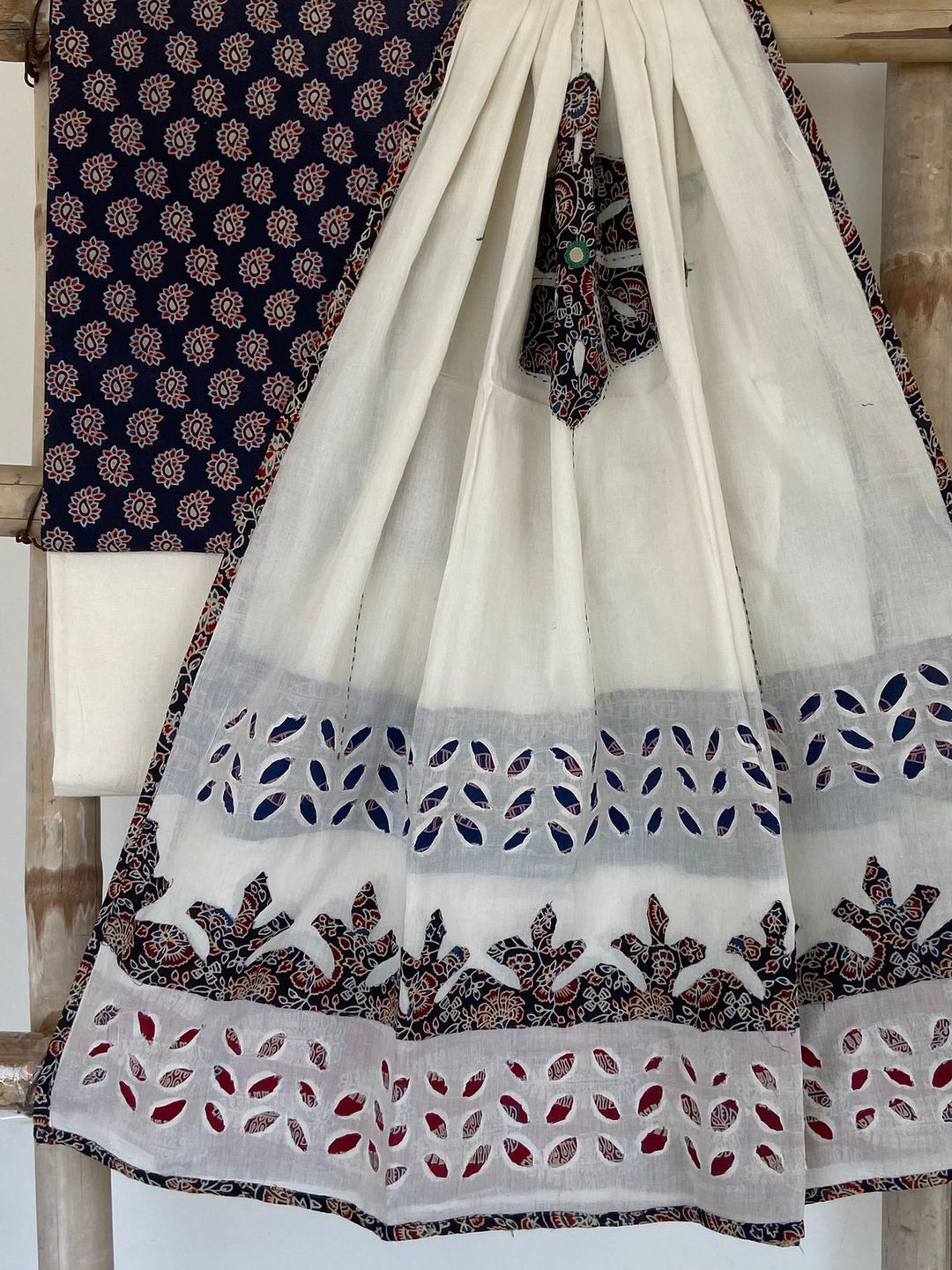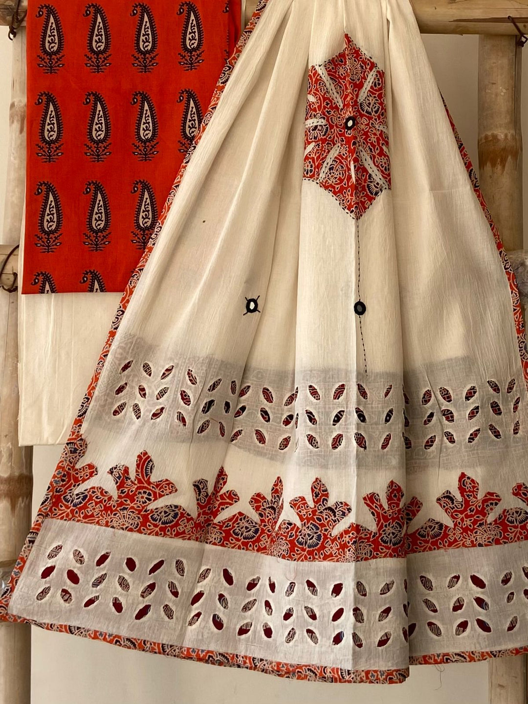 Fab-Persona prints Ajrakh on high-quality pure cotton and modal silk, as per tradition. Cotton Unstitched suits fabric, which is popular and best-selling, is chosen for its durability, softness, and breathability. It is also the best fabric for retaining the vibrancy of natural dyes and patterns.