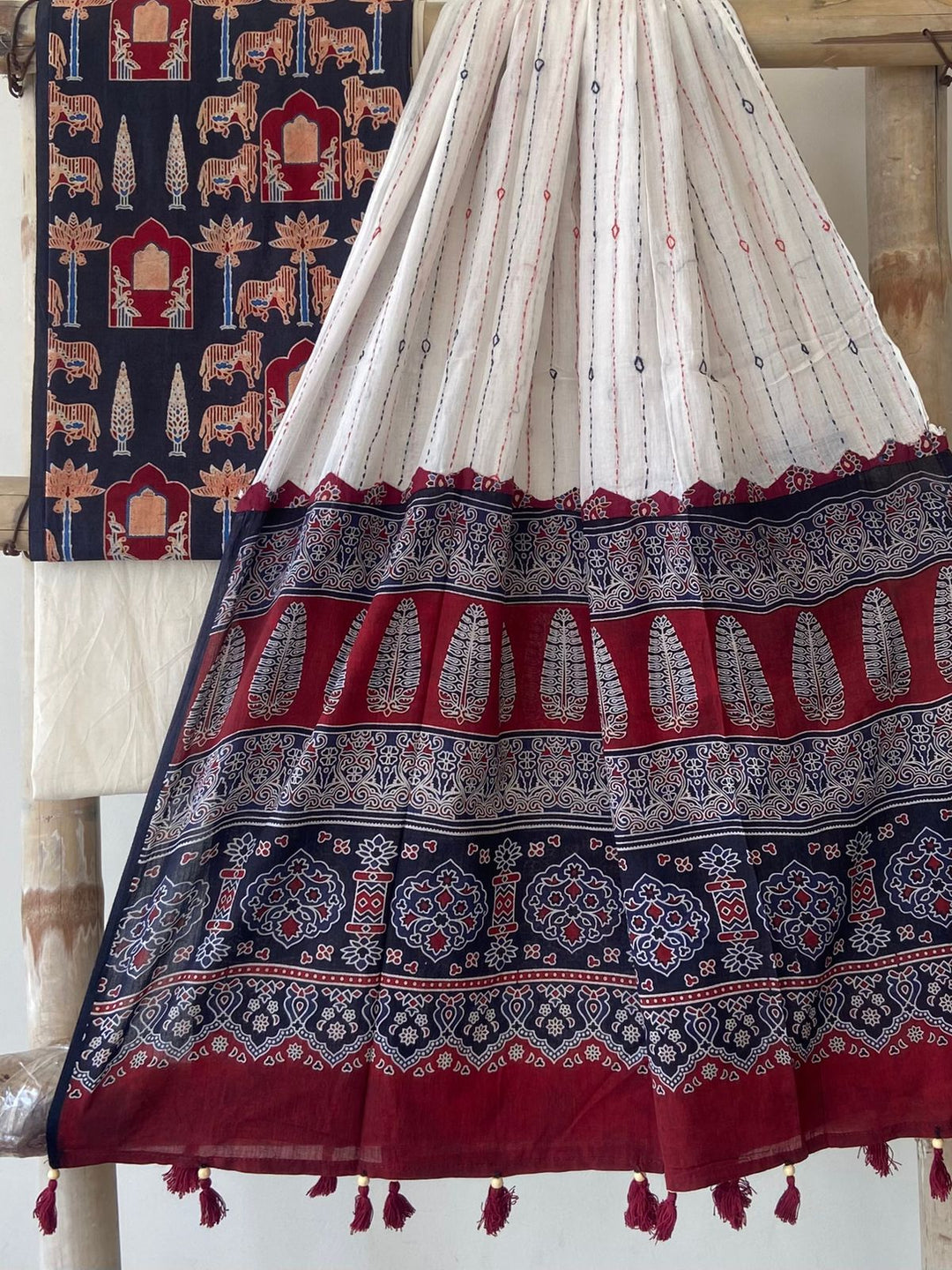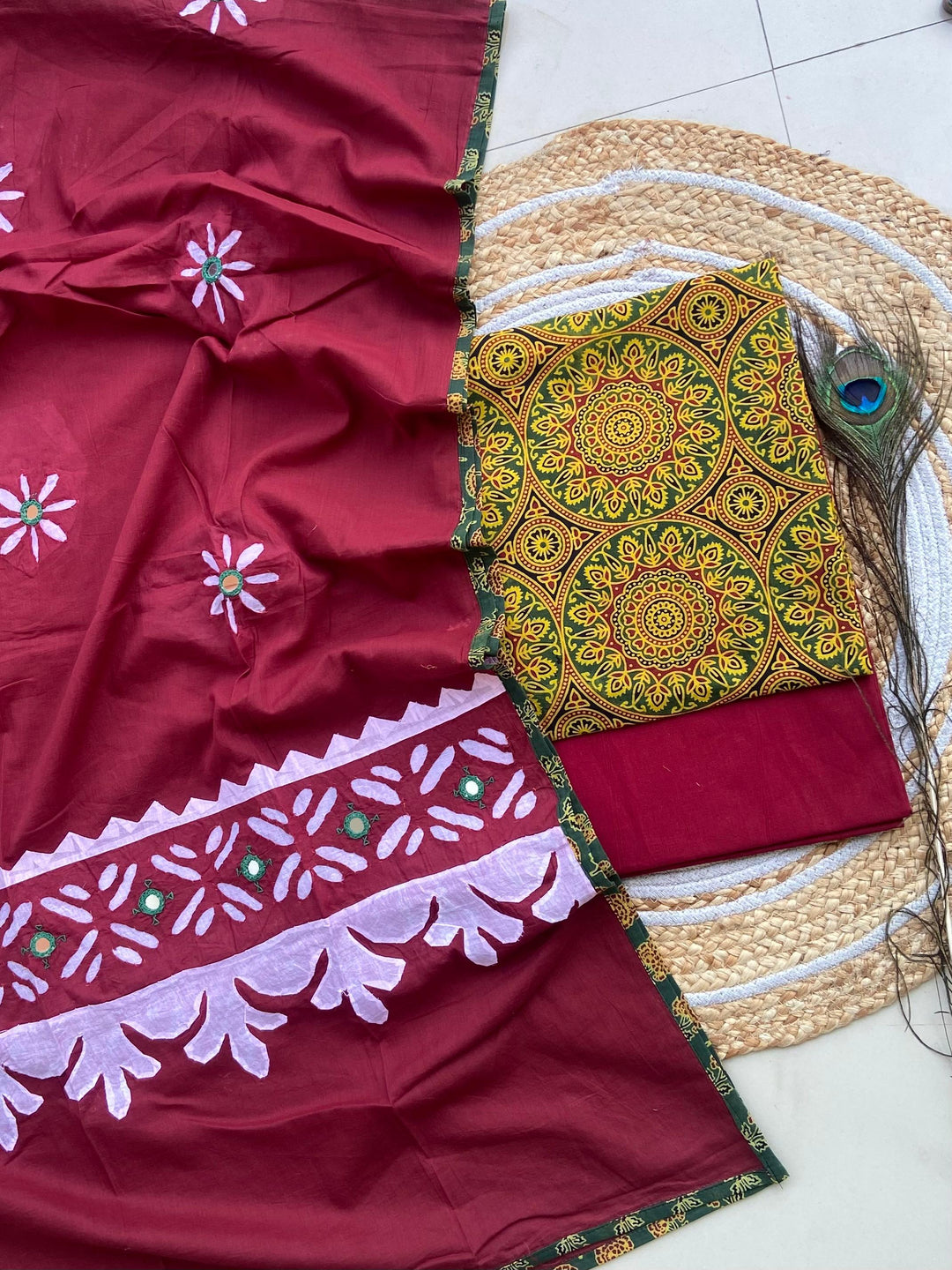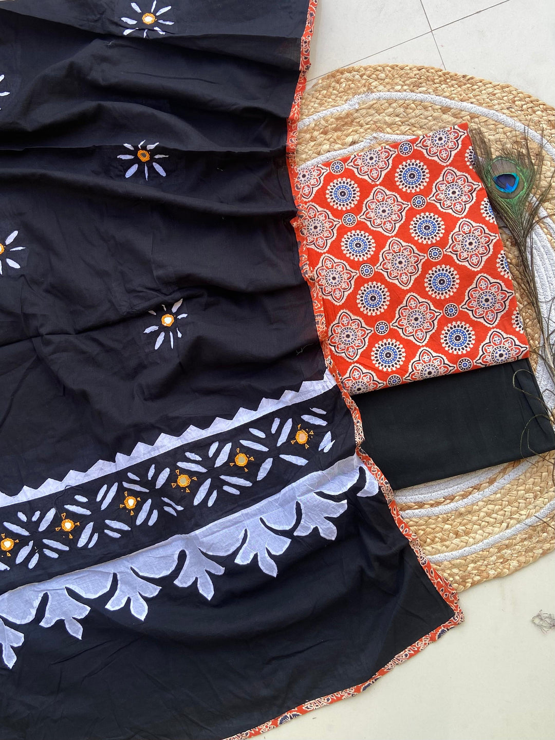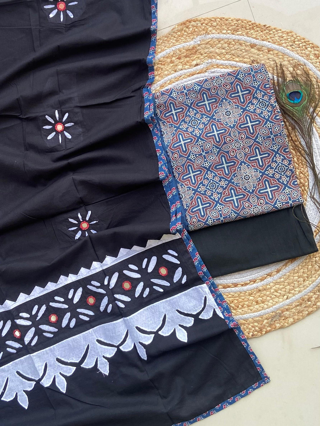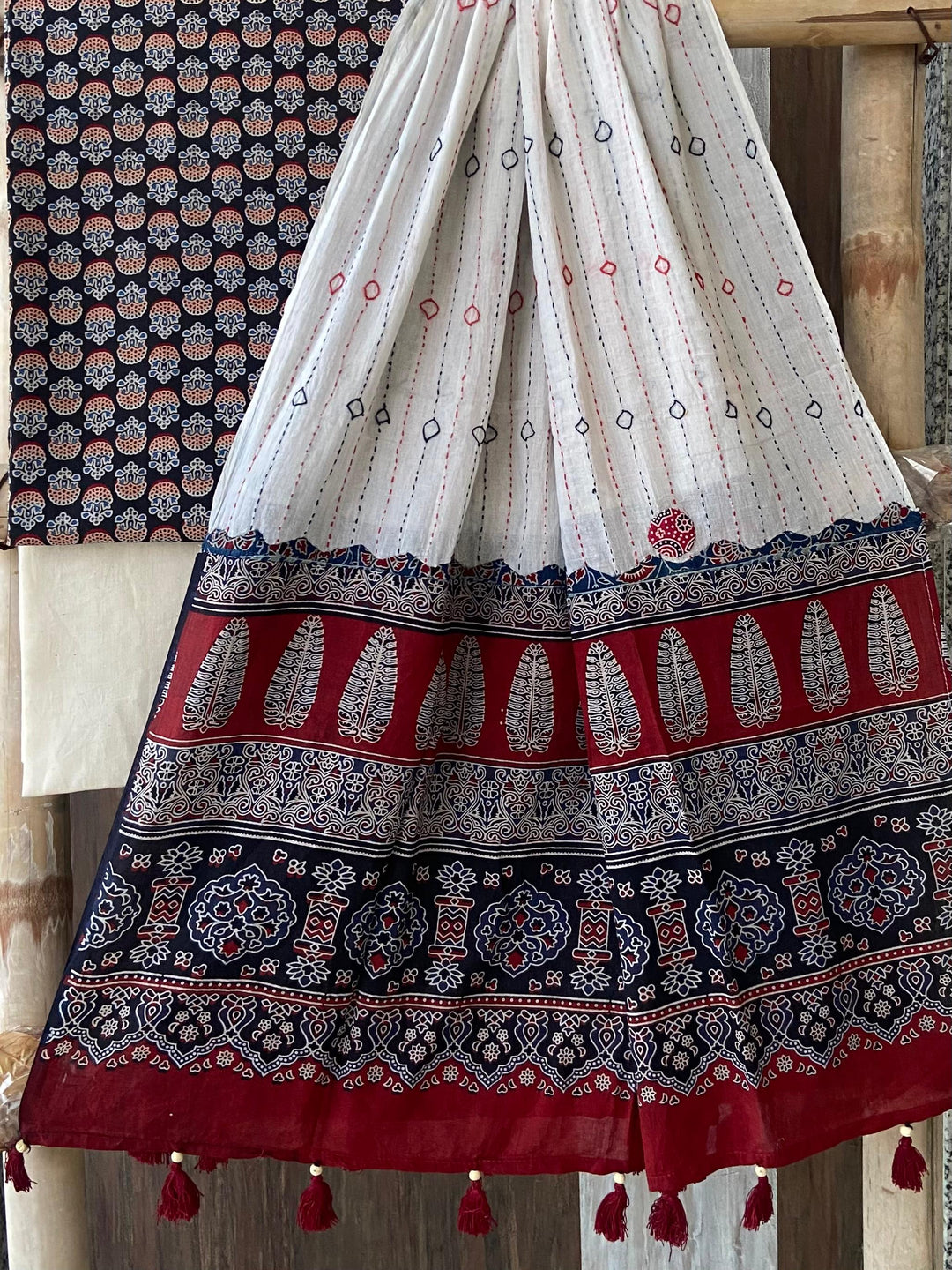 Fab-Persona prints Ajrakh on high-quality pure cotton and modal silk, as per tradition. Cotton Unstitched suits fabric, which is popular and best-selling, is chosen for its durability, softness, and breathability. It is also the best fabric for retaining the vibrancy of natural dyes and patterns.