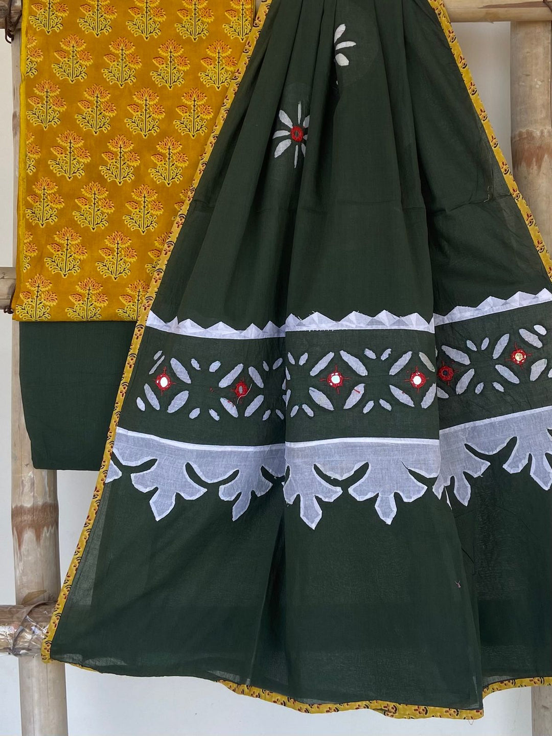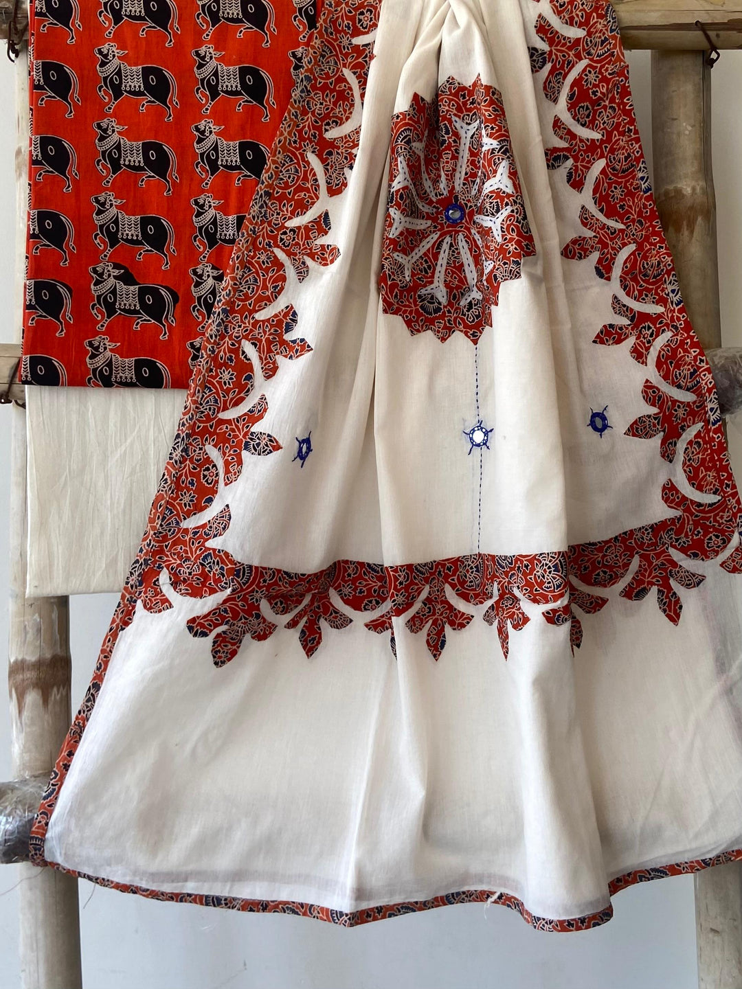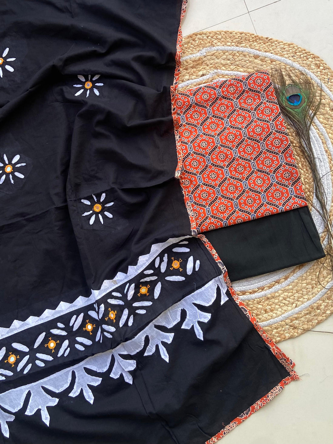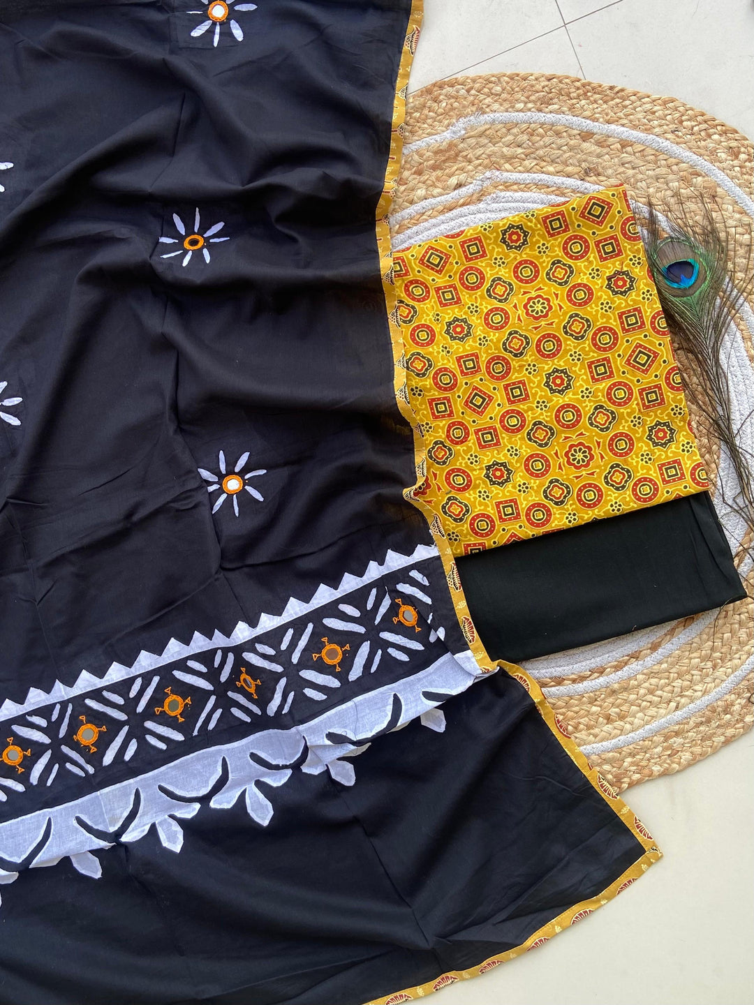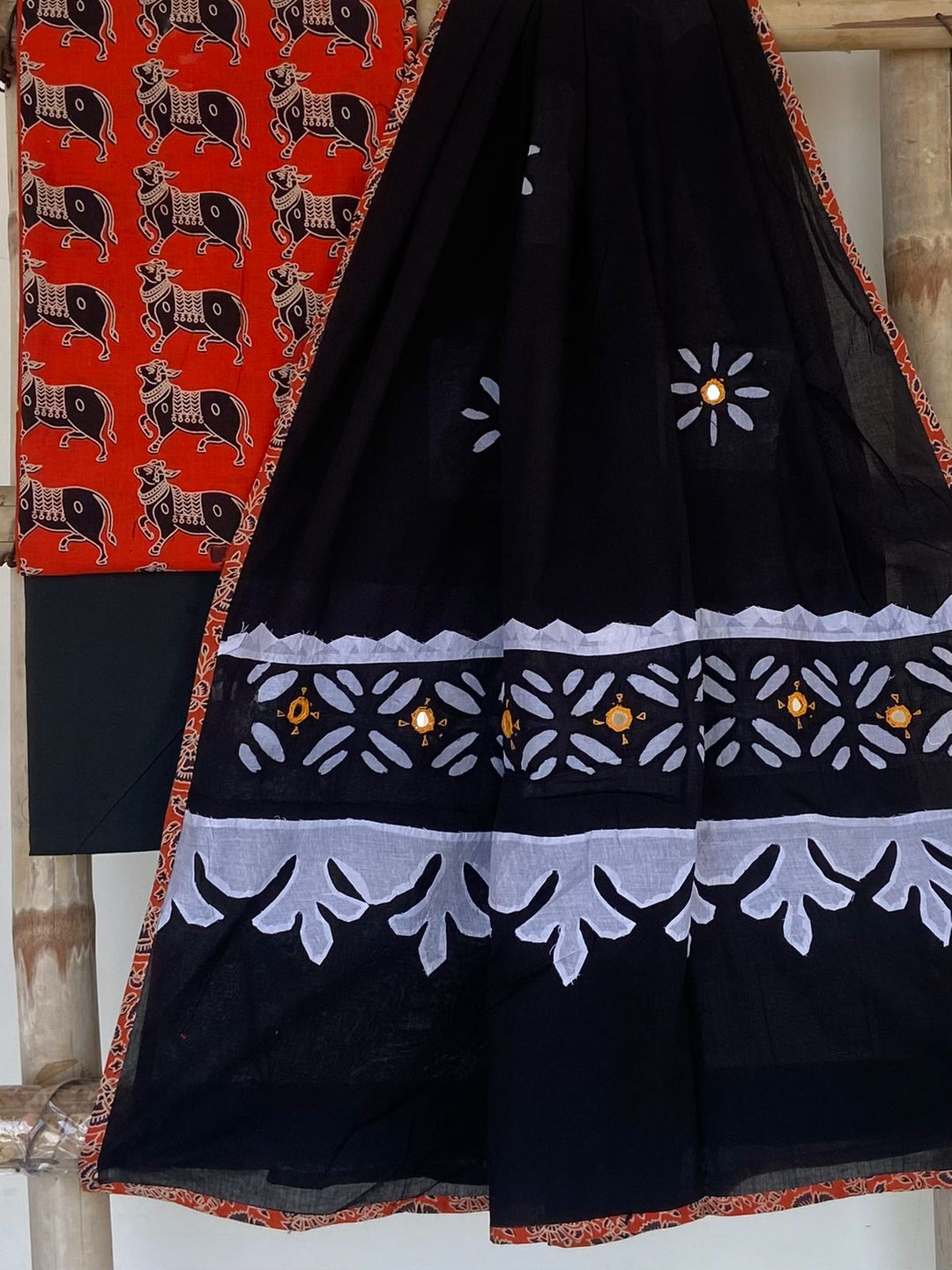 Fab-Persona prints Ajrakh on high-quality pure cotton and modal silk, as per tradition. Cotton Unstitched suits fabric, which is popular and best-selling, is chosen for its durability, softness, and breathability. It is also the best fabric for retaining the vibrancy of natural dyes and patterns.