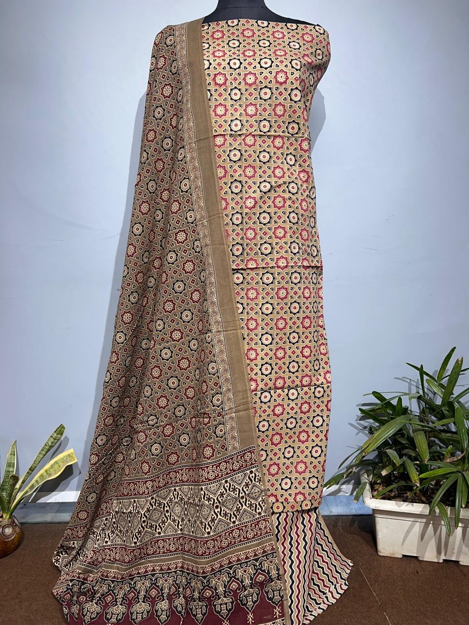 Pure Cotton Azrakh Print Unstitched suit With Dupatta.