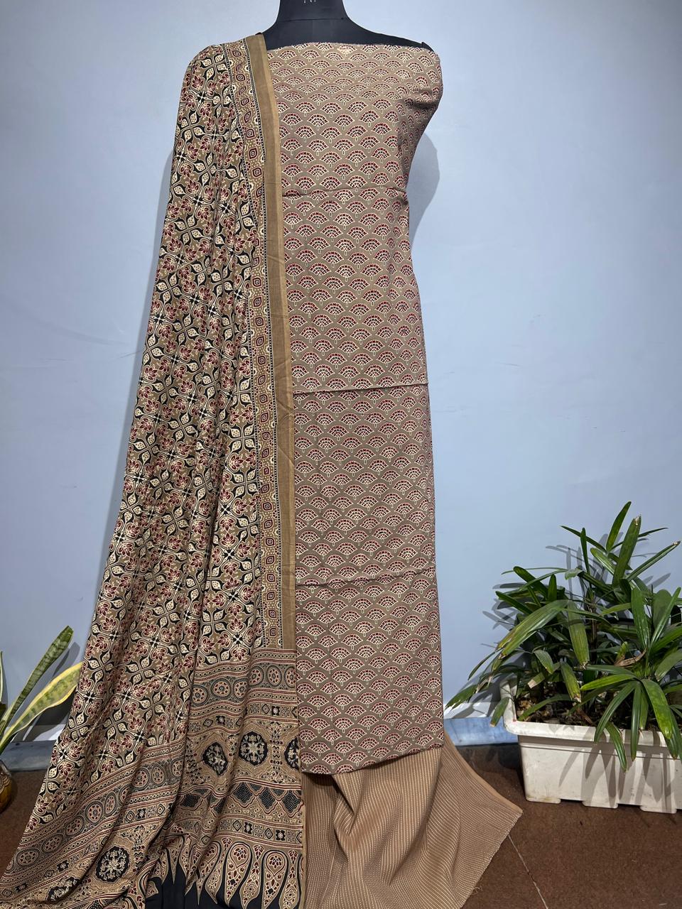Pure Cotton Azrakh Print Unstitched suit With Dupatta.