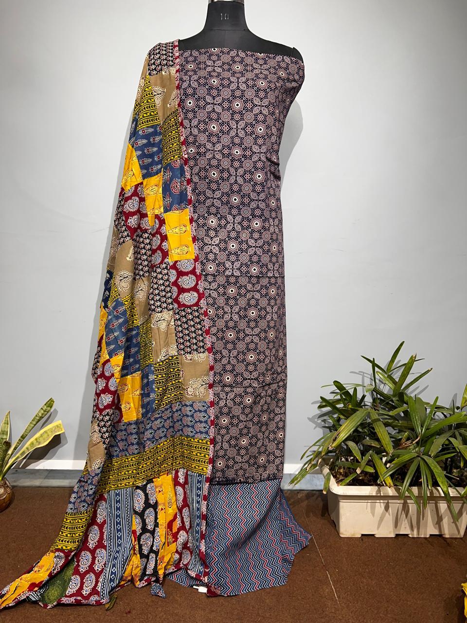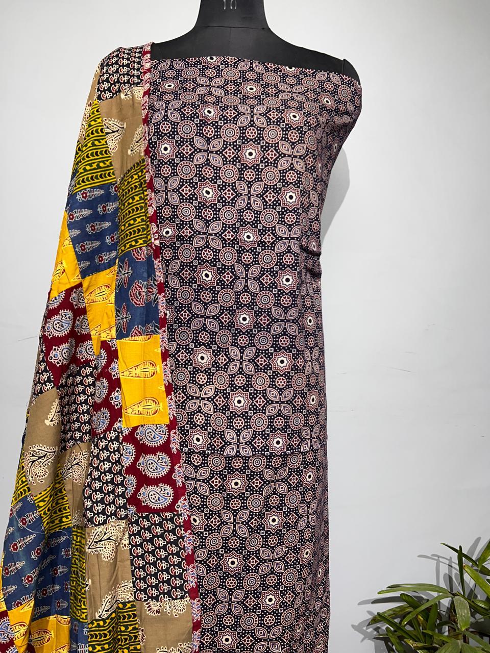 Pure Cotton Azrakh Print Unstitched suit With Dupatta