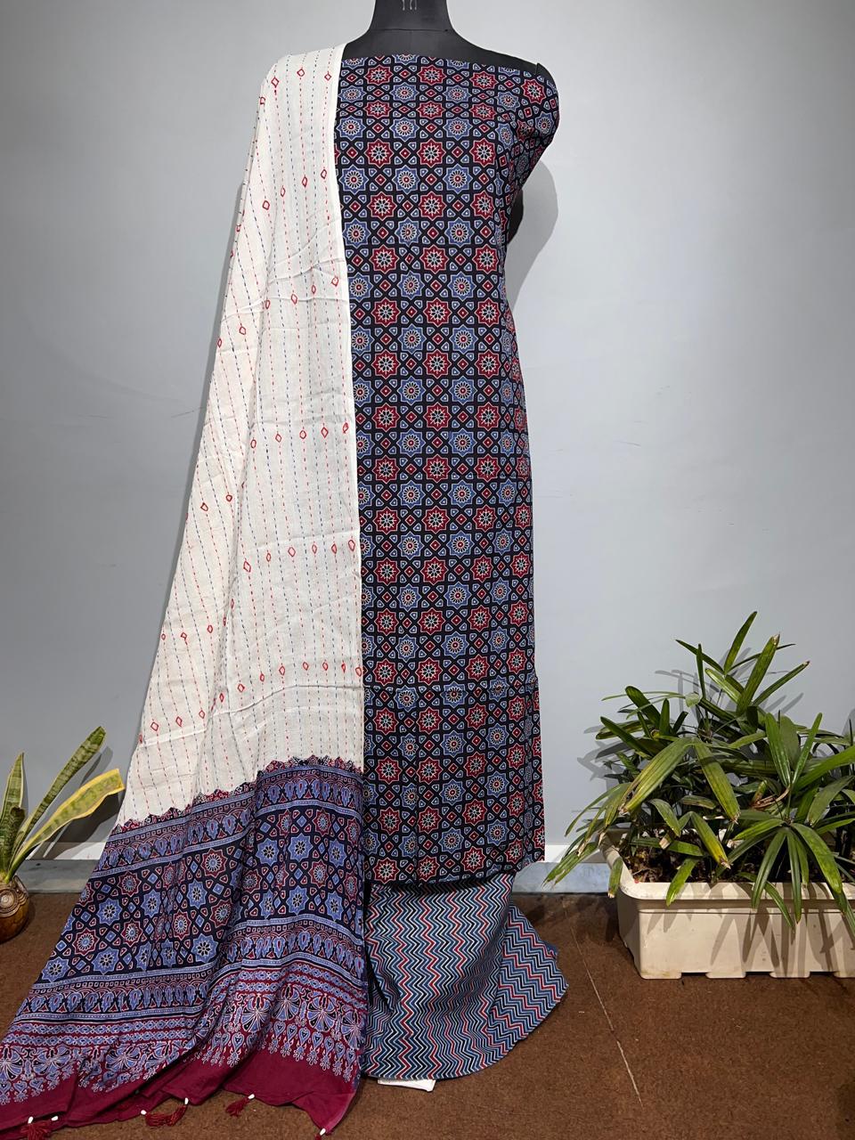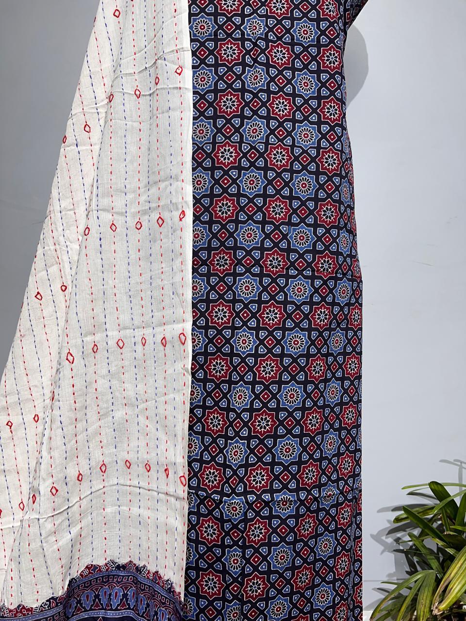 Pure Cotton Azrakh Print Unstitched suit With Dupatta