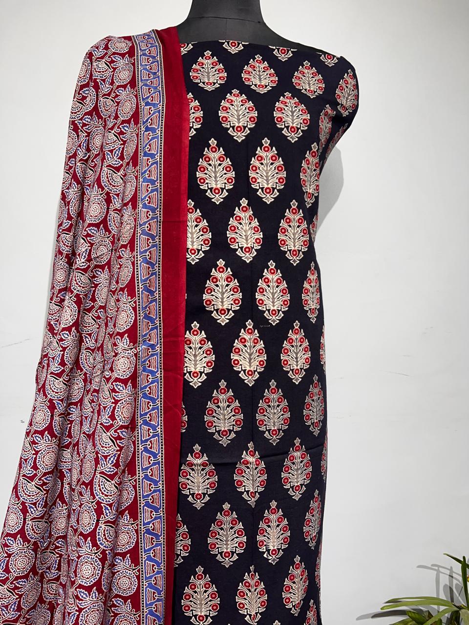 Pure Cotton Azrakh Print Unstitched suit With Dupatta