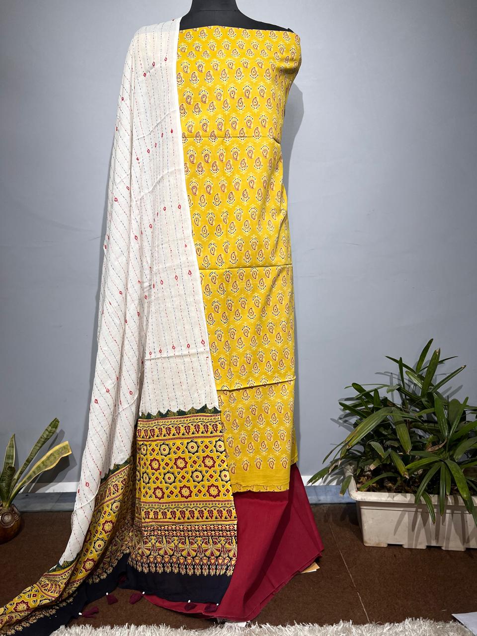 Pure Cotton Azrakh Print Unstitched suit With Dupatta.