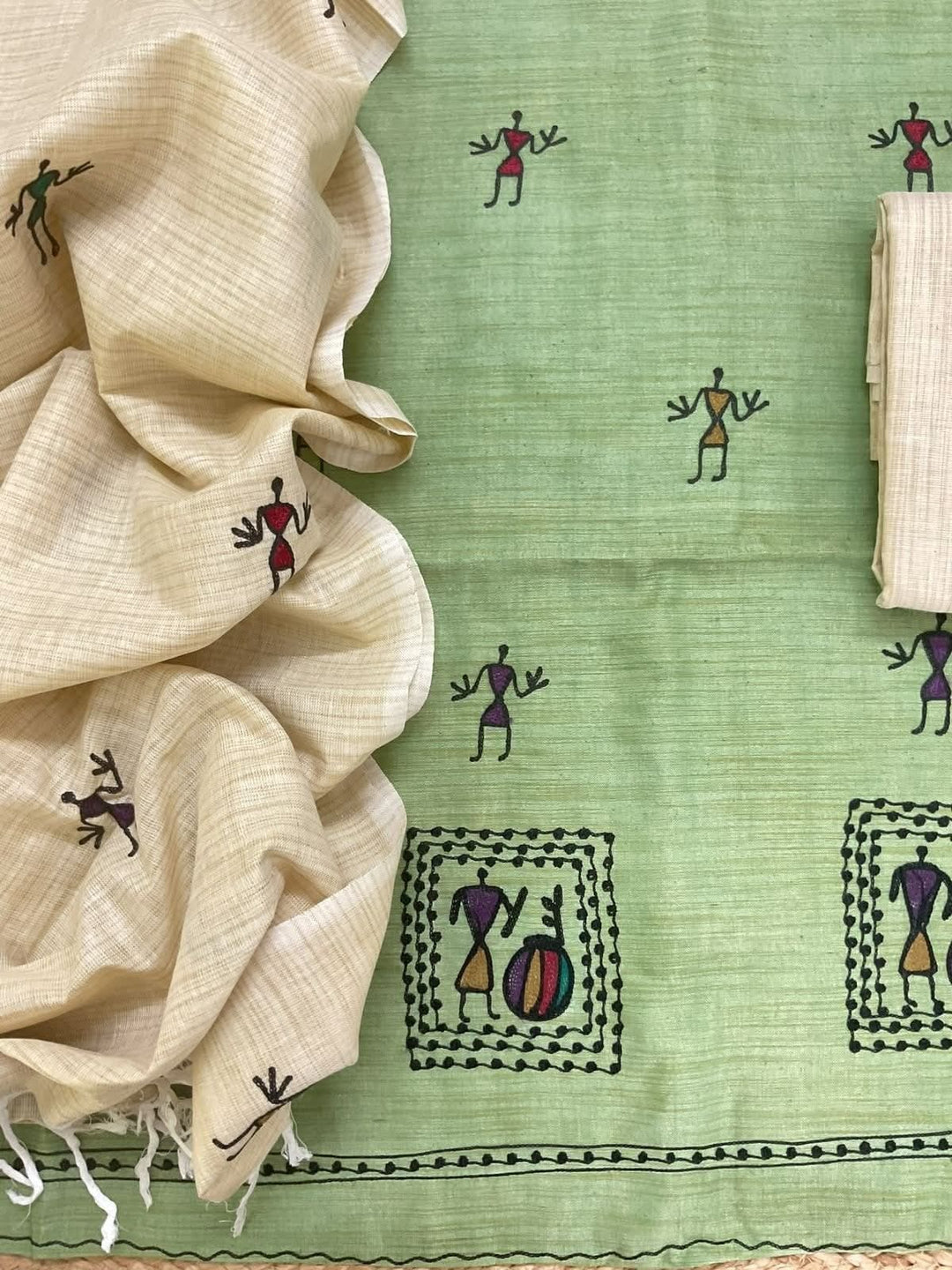Pure Katan Giccha Silk 2 PC Unstitched Suit with Madhubani Print Dupatta