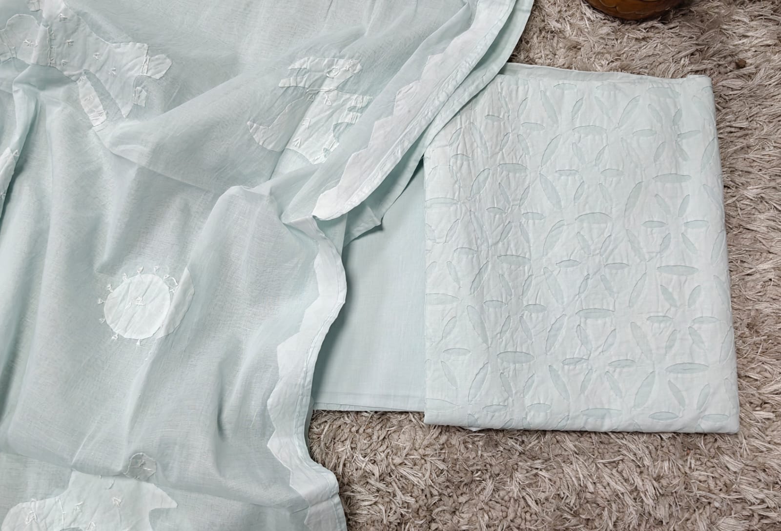 Pure Cotton Applique Work Unstitched Suit With Cotton Applique Work Dupatta.