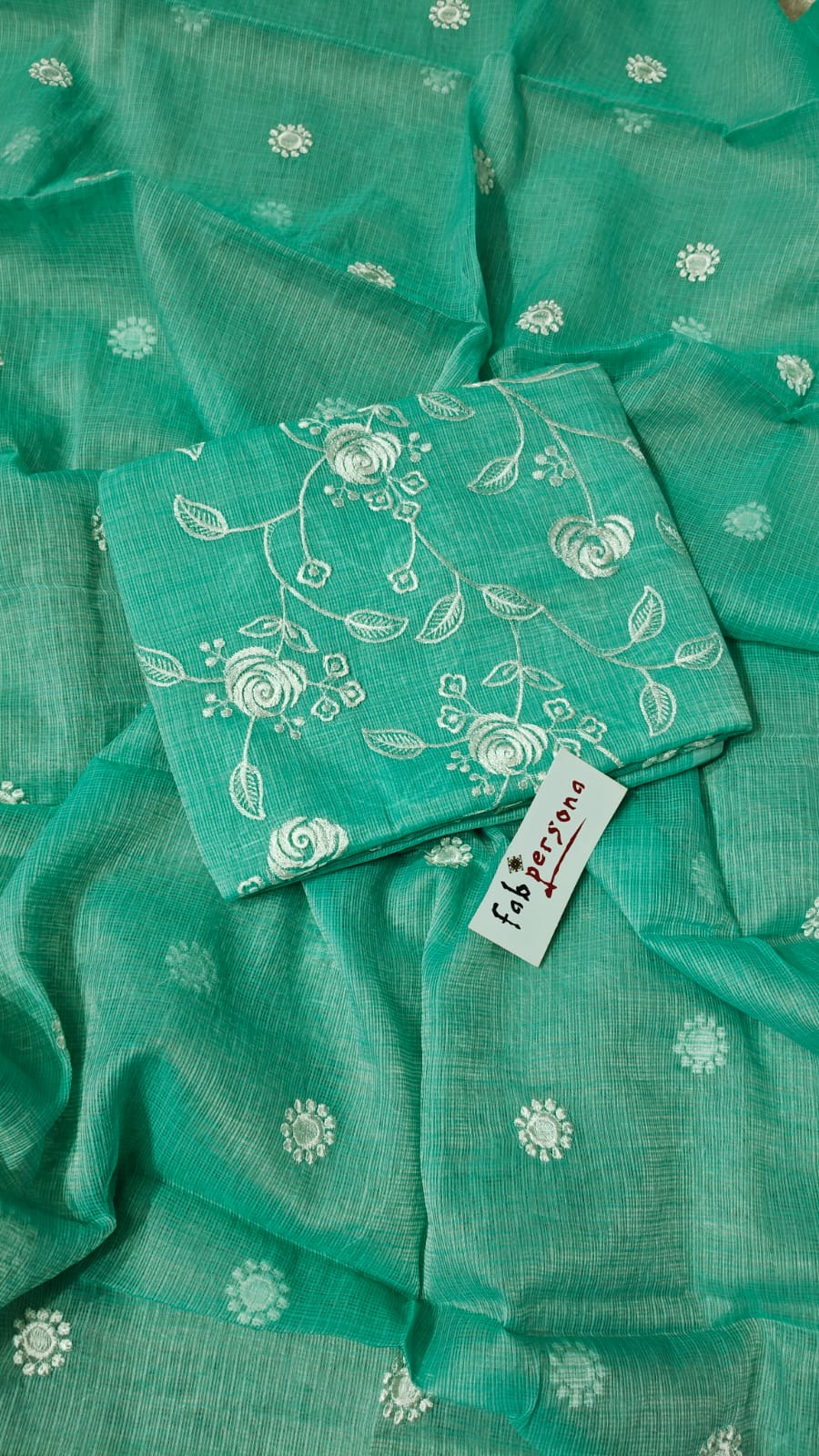 Pure Cotton Kota Doriya Hand Embroidery Unstitched Suit With Chikankari Bottom.