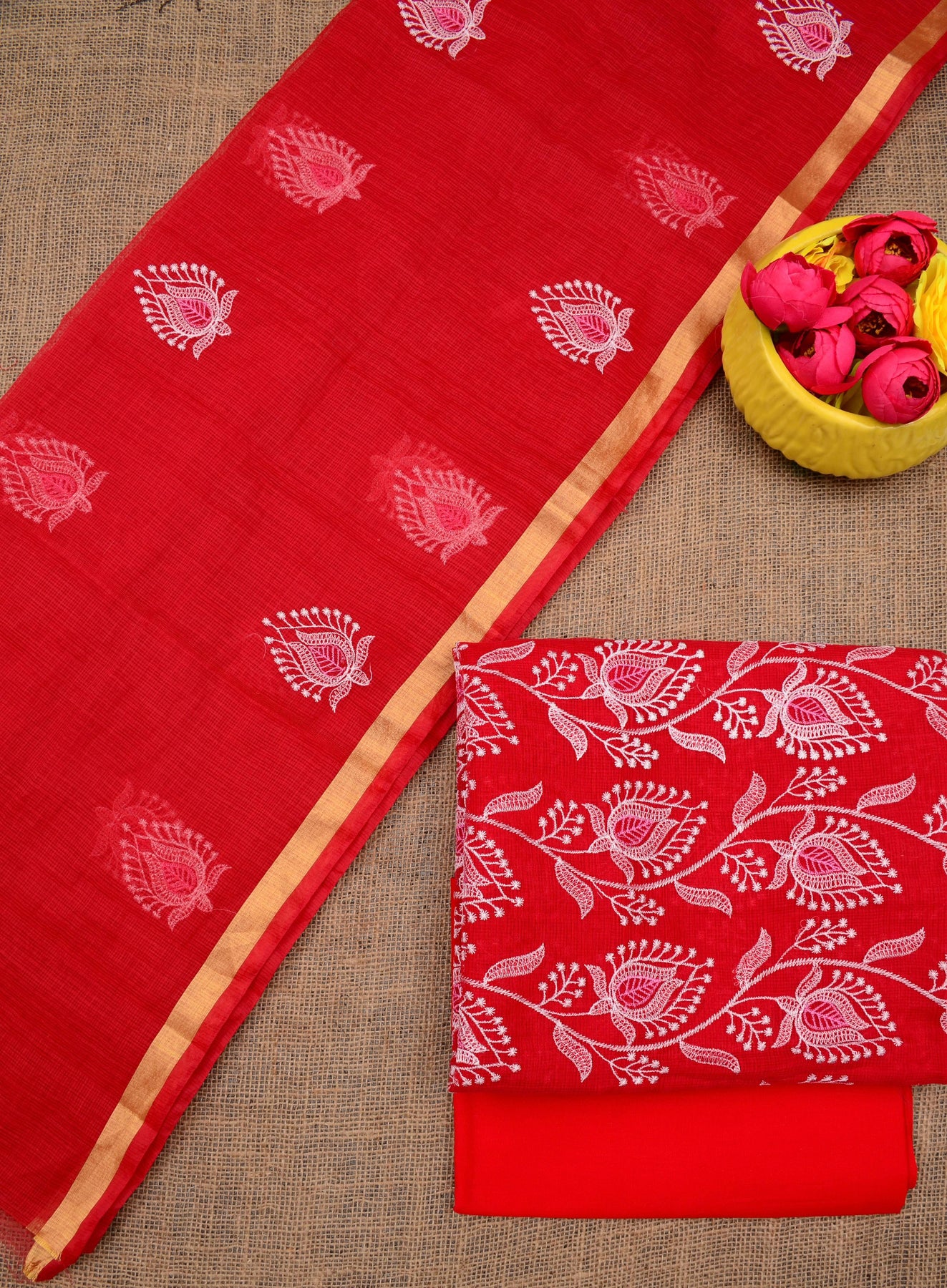 Pure Kota Doriya Embroidered Unstitched Suit With Dupatta