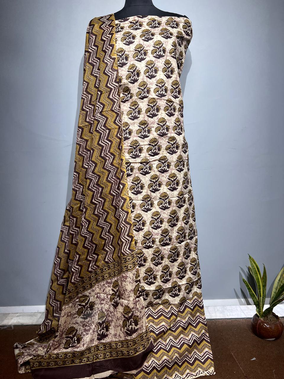 Pure Cotton Hand Block Print Unstitched Suit With Cotton Dupatta