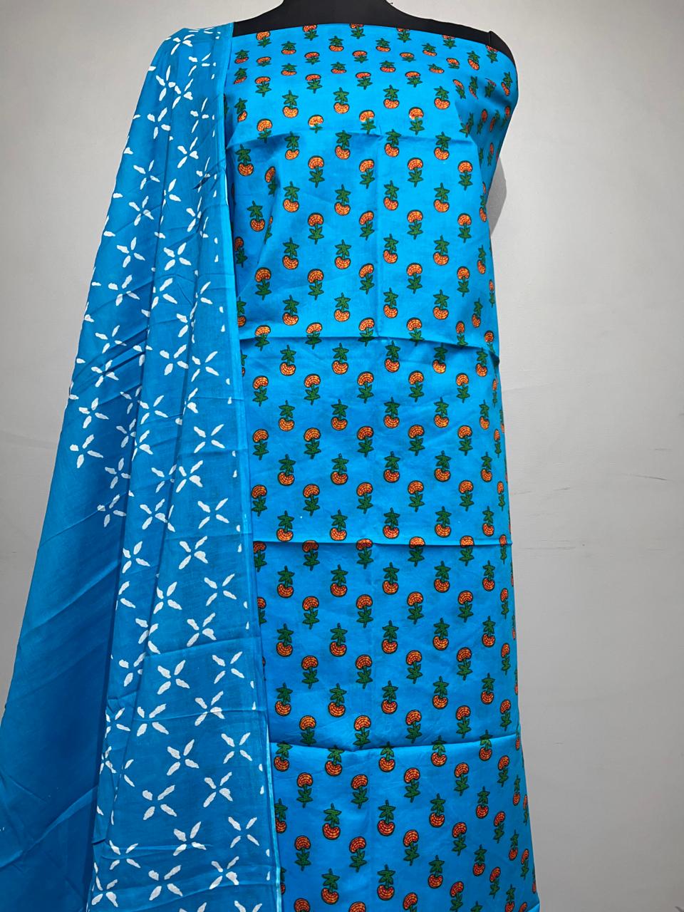 Pure Cotton Hand Block Print Unstitched Suit With Cotton Dupatta