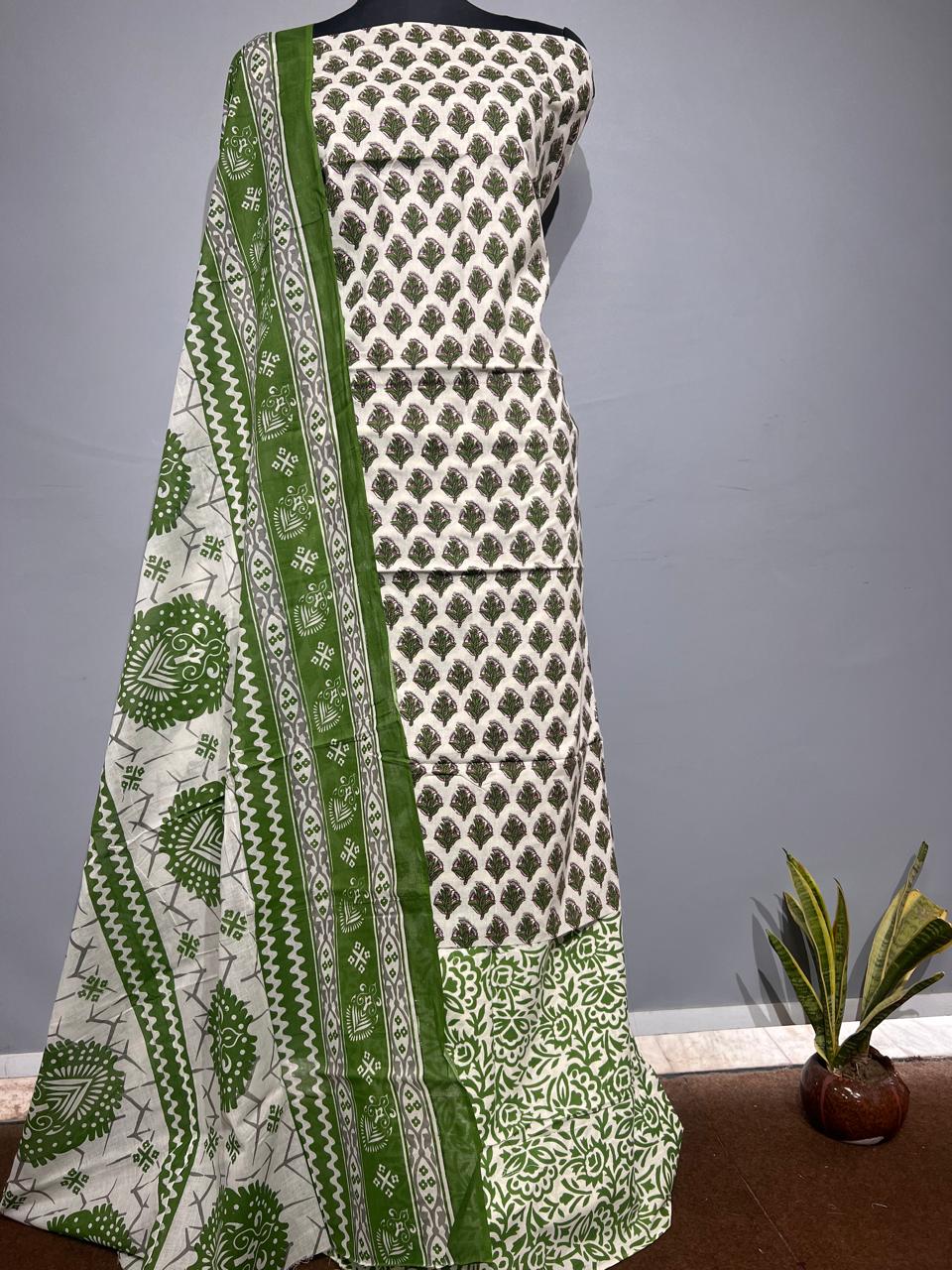 Pure Cotton Hand Block Print Unstitched Suit With Cotton Dupatta