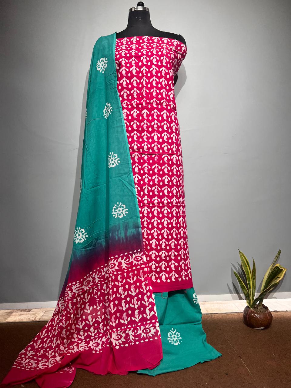 Pure Cotton Hand Block Print Unstitched Suit With Cotton Dupatta