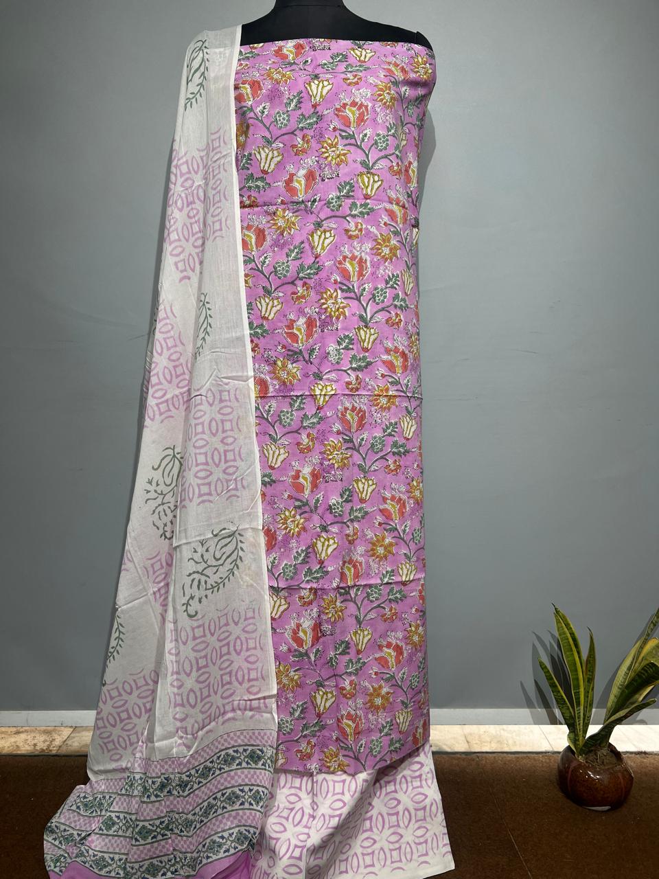Pure Cotton Hand Block Print Unstitched Suit With Cotton Dupatta