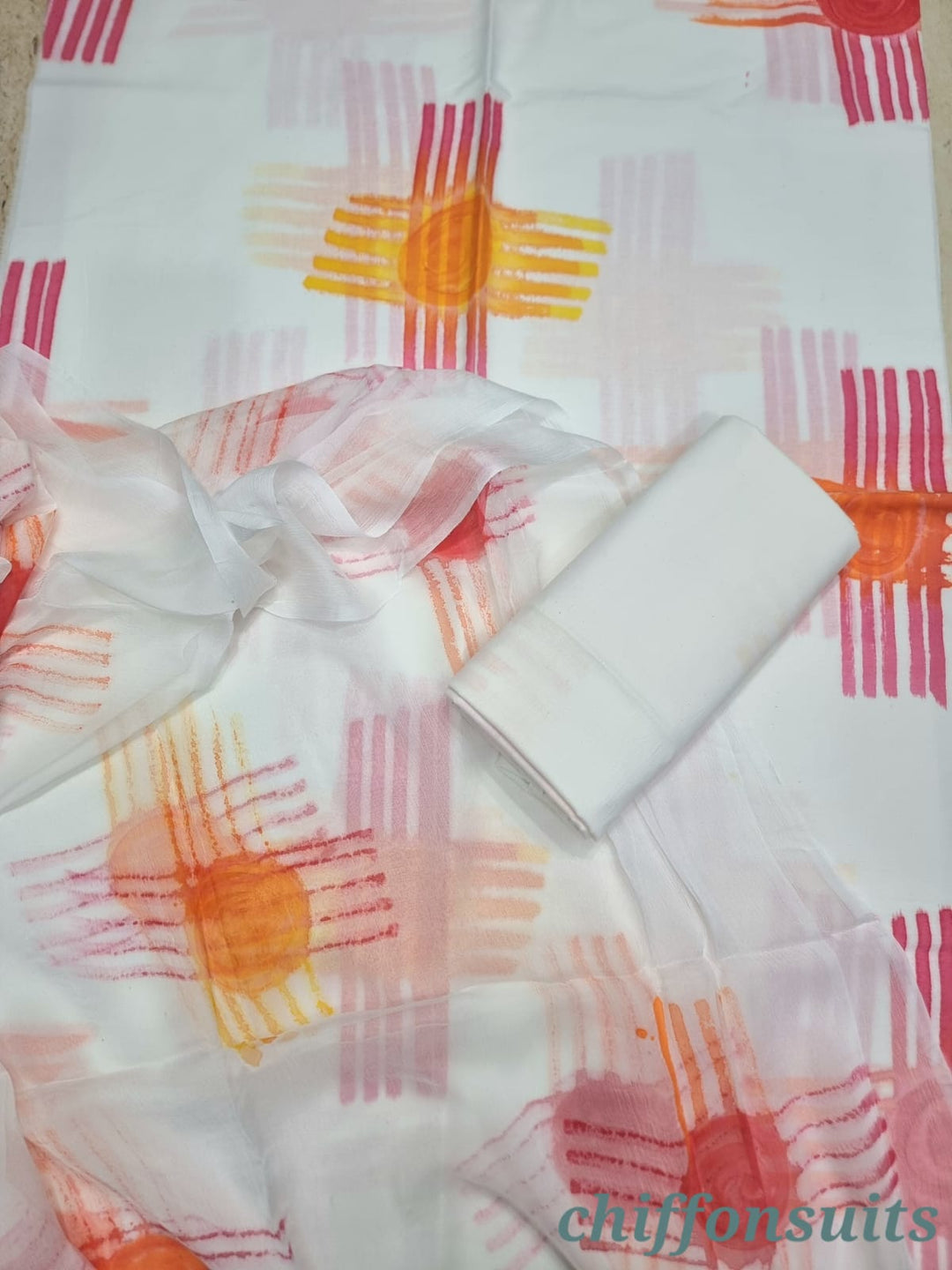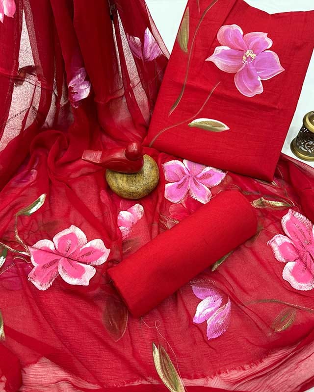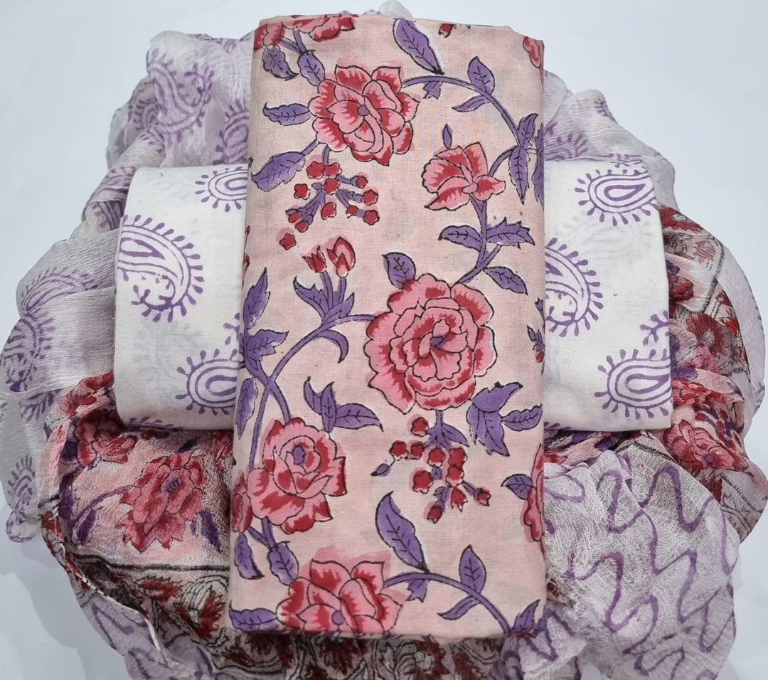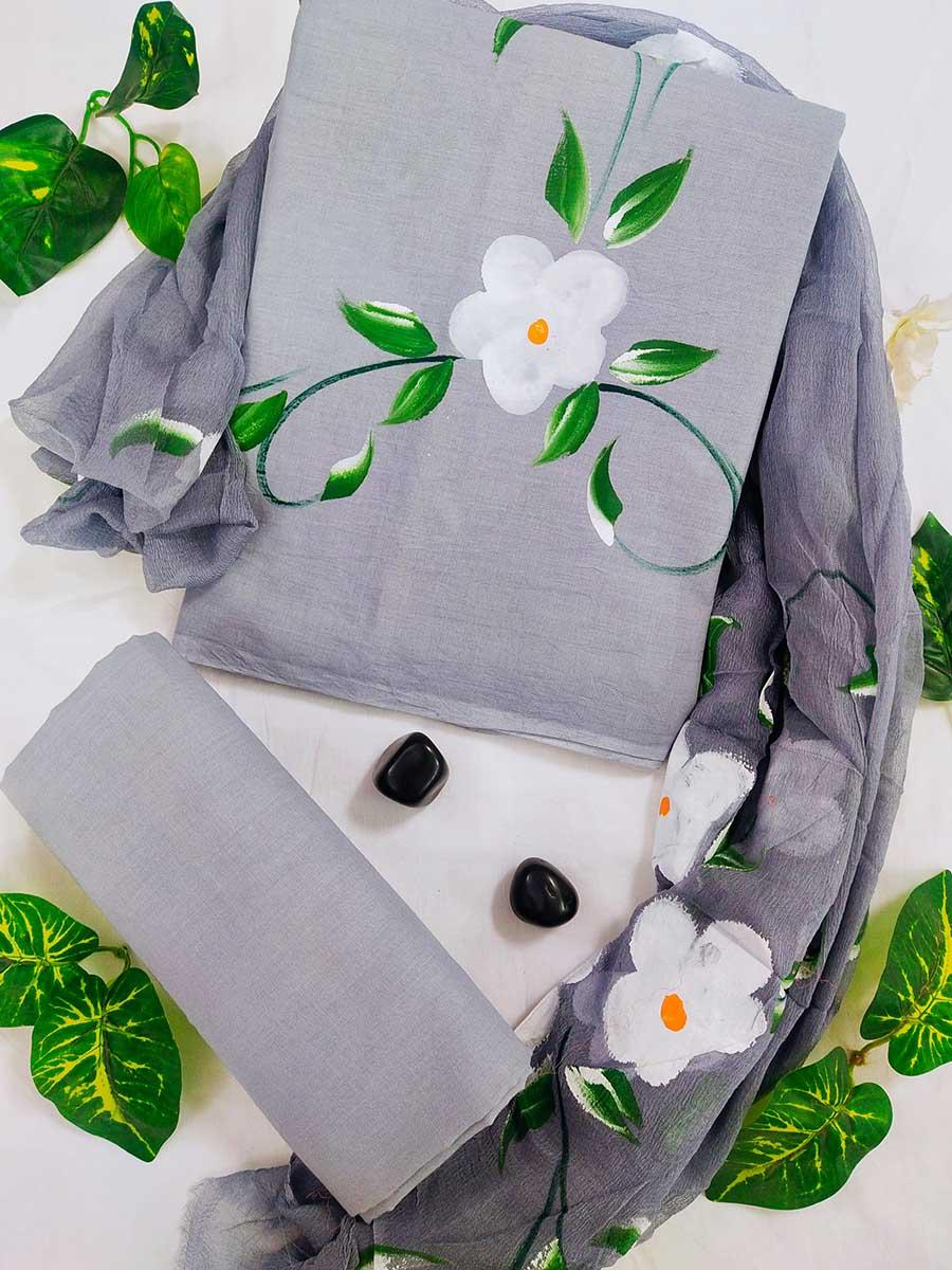 Welcome to the world of comfort, elegance, and timeless beauty with our hand-curated collection of cotton unstitched suits. Whether it's a wedding, a family get-together, a casual sunny day out, or a day at the office, our comfortable cotton suit sets are perfect for every occasion and every season. Designed for women who adore breezy fabrics and graceful silhouettes, each piece brings effortless charm and sophistication to your wardrobe.