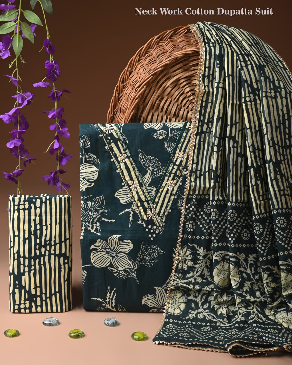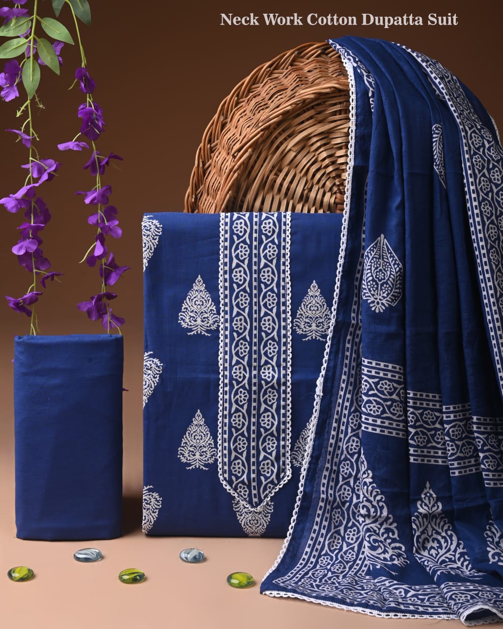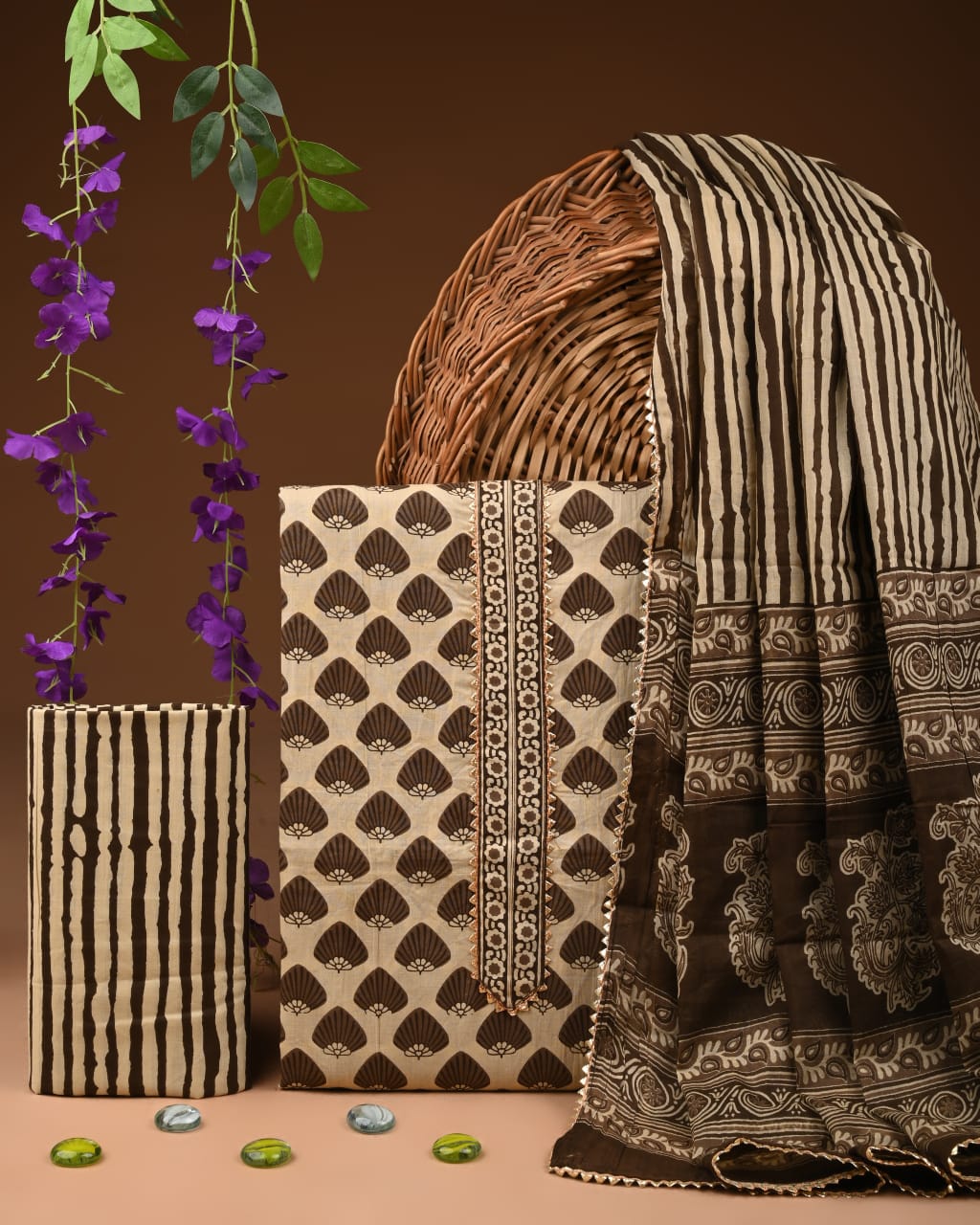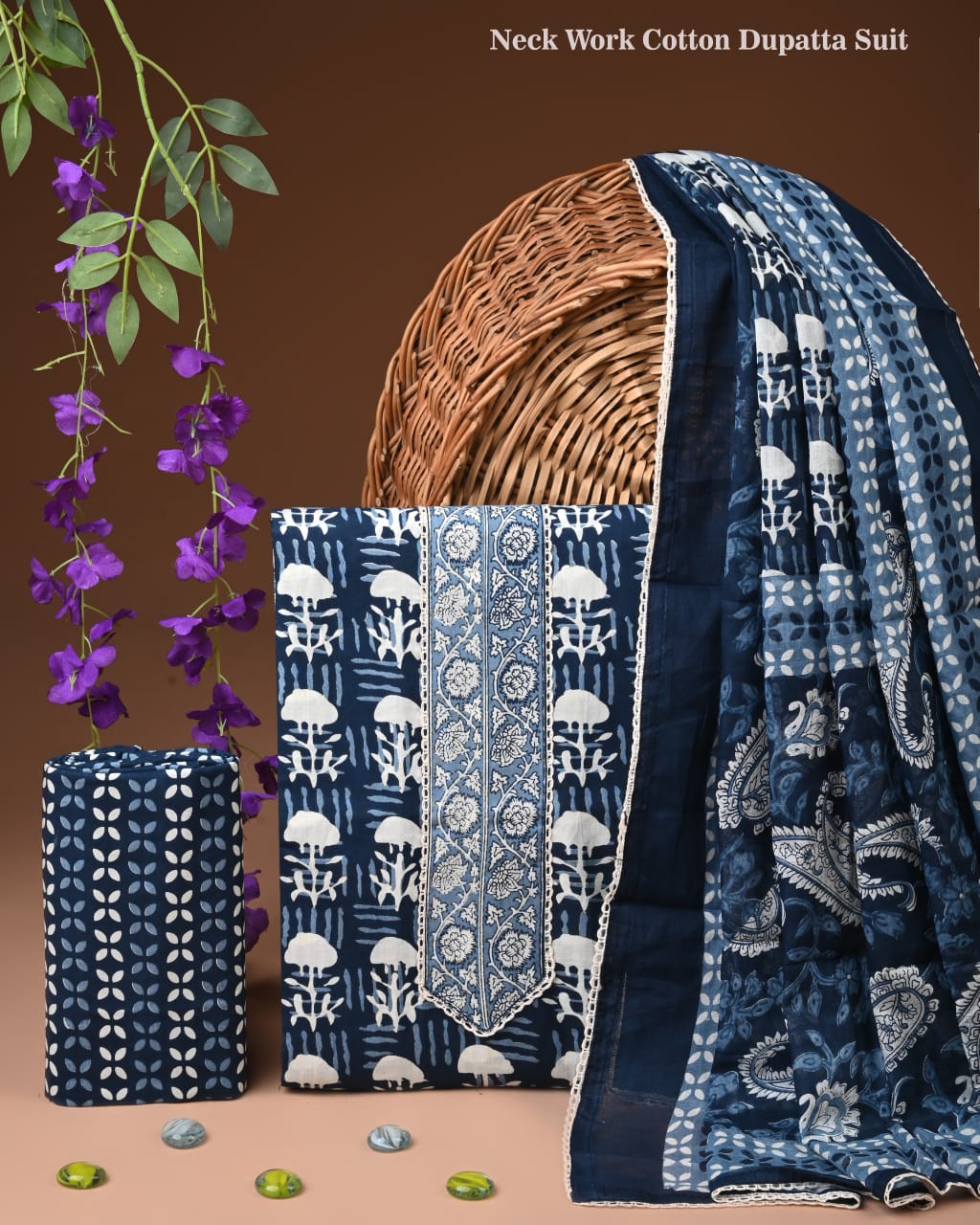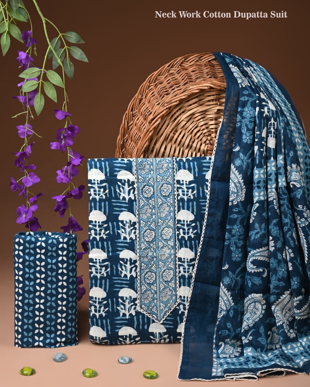Our Gota Patti unstitched suits are made from breathable, high-quality fabrics like pure cotton, Chanderi, and Kota Doria—all ideal for comfort and festive elegance.