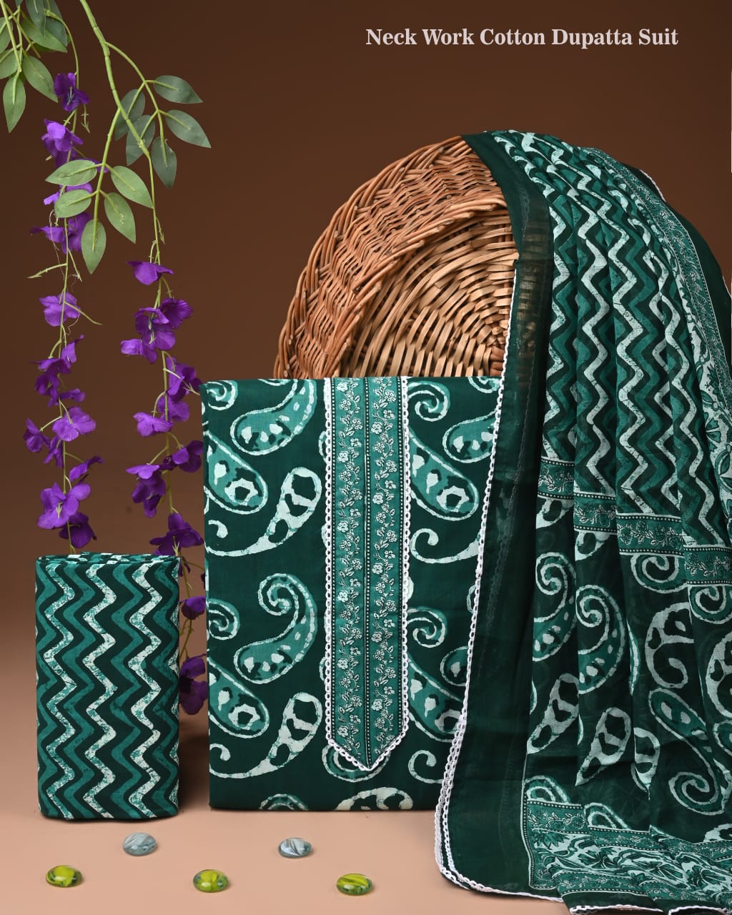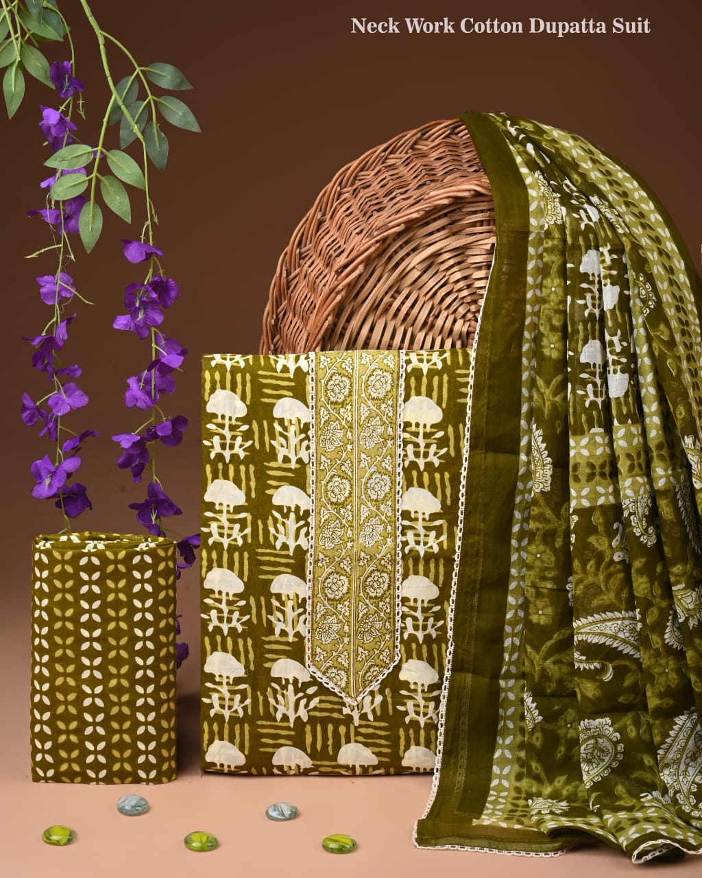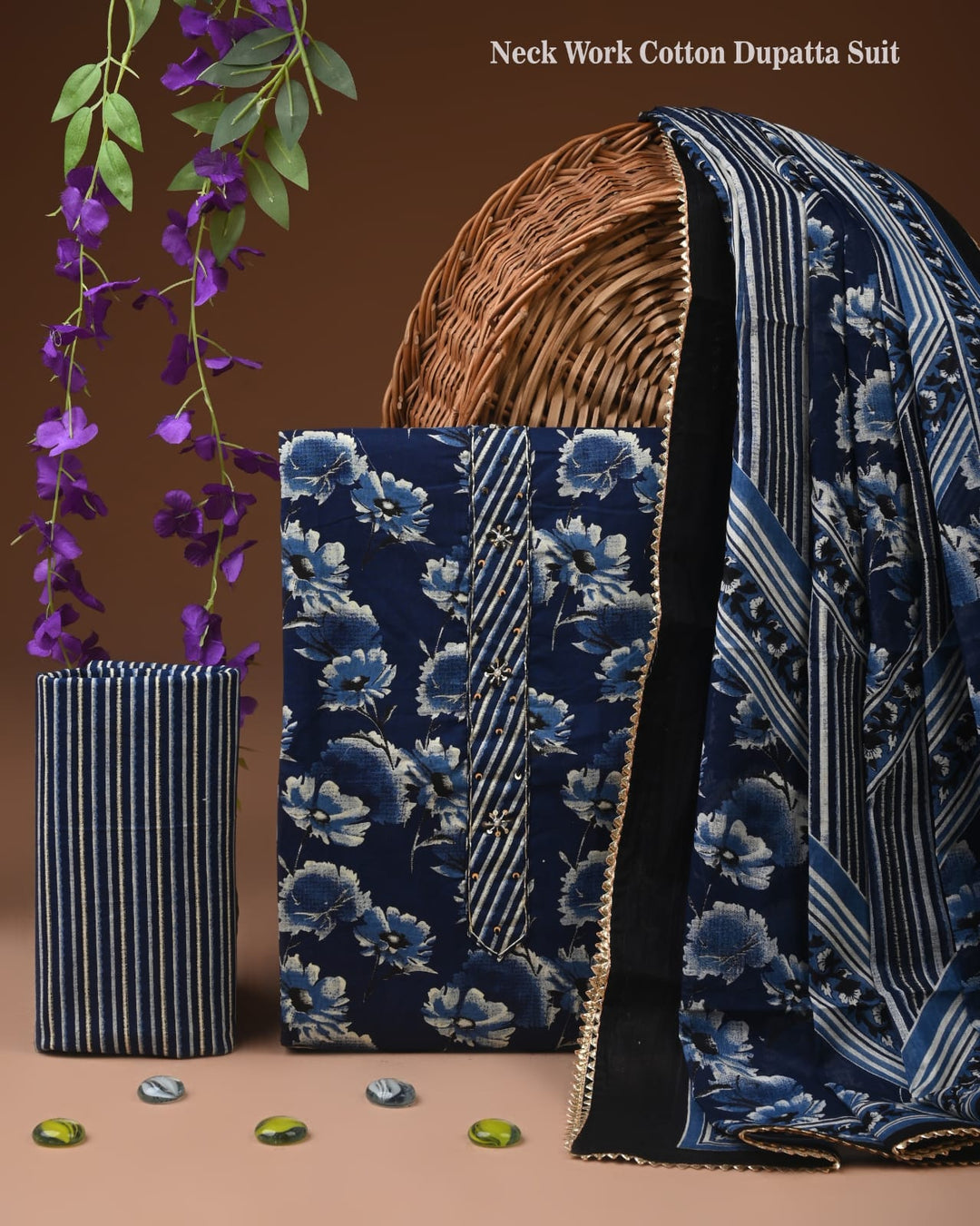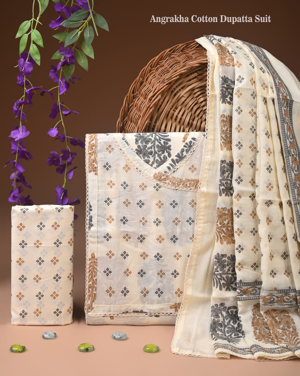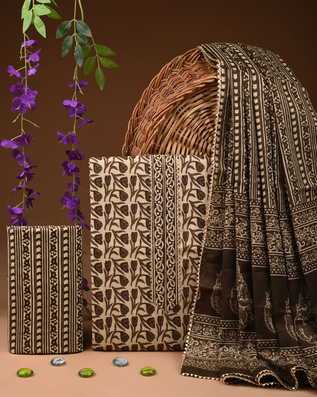 Our Gota Patti unstitched suits are made from breathable, high-quality fabrics like pure cotton, Chanderi, and Kota Doria—all ideal for comfort and festive elegance.