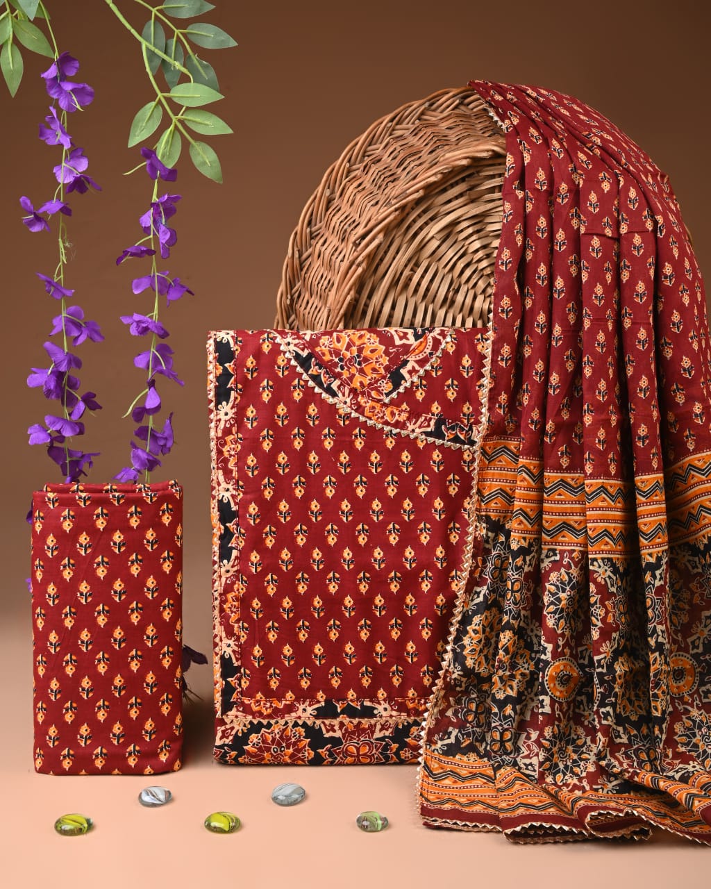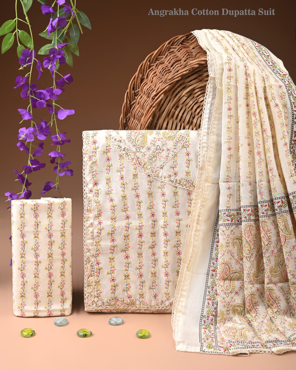 - Authentic Handwork: Each suit features beautifully detailed gota patti embroidery, skillfully handcrafted by artisans.