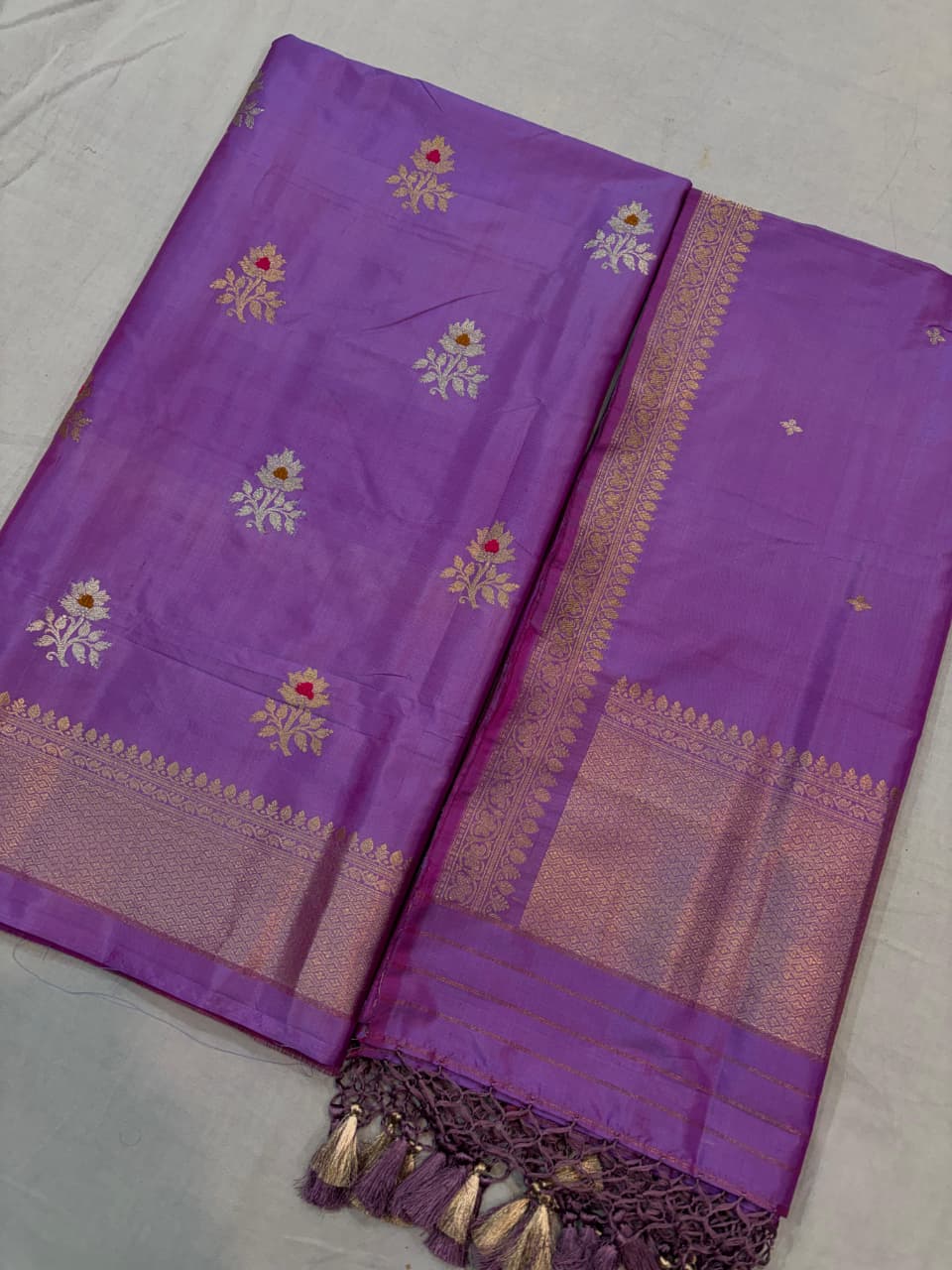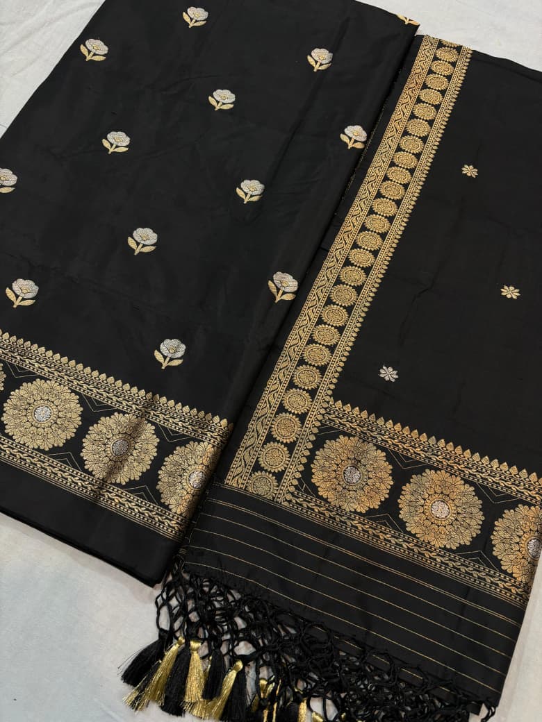 Pure Banarasi Chiniya Silk Kadwa Booti Unstitched Suit With Pure Kora Rangkaat Dupatta.