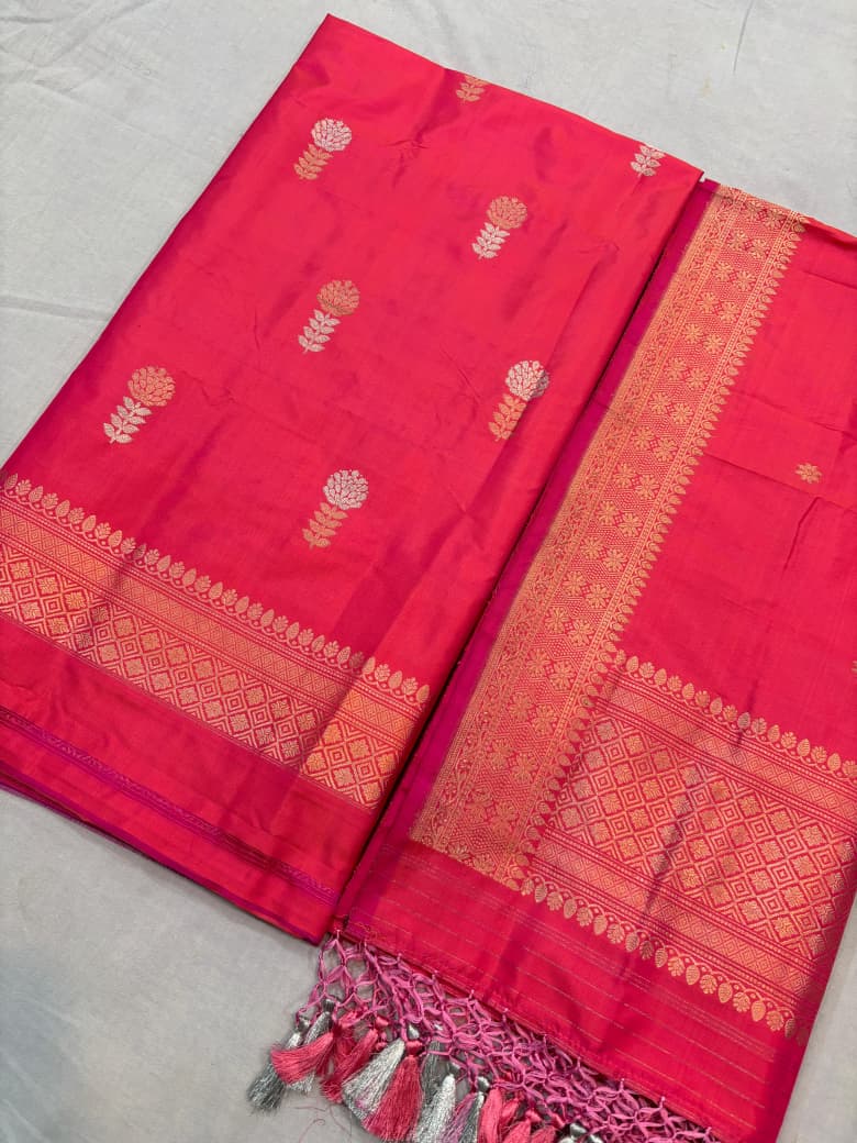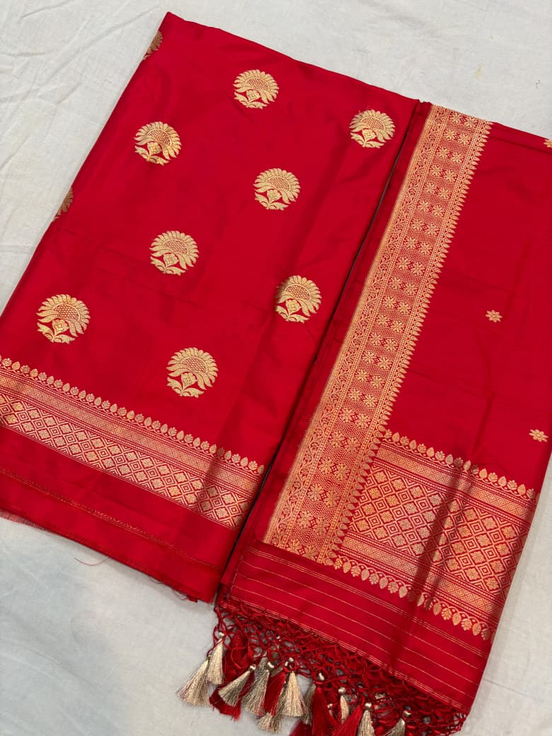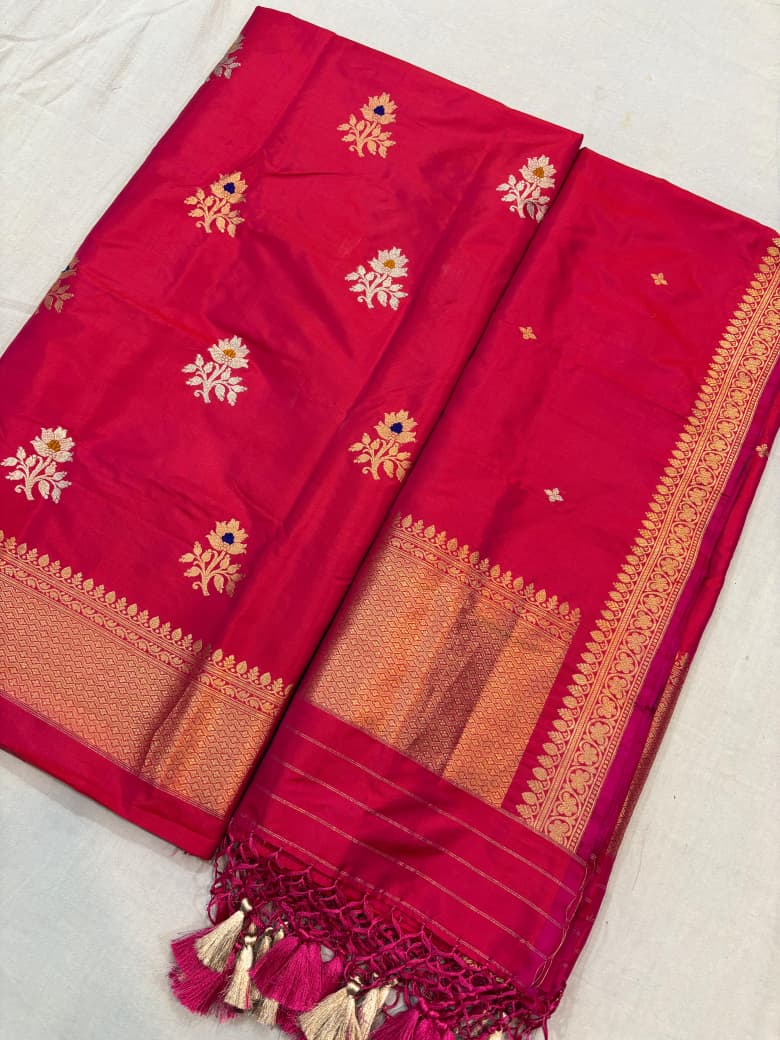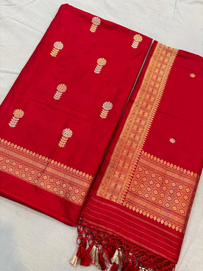 Pure Banarasi Raw Dupion Silk Kadhuwa Work Unstitched Suit With Rankart Kadhuwa Dupatta.
