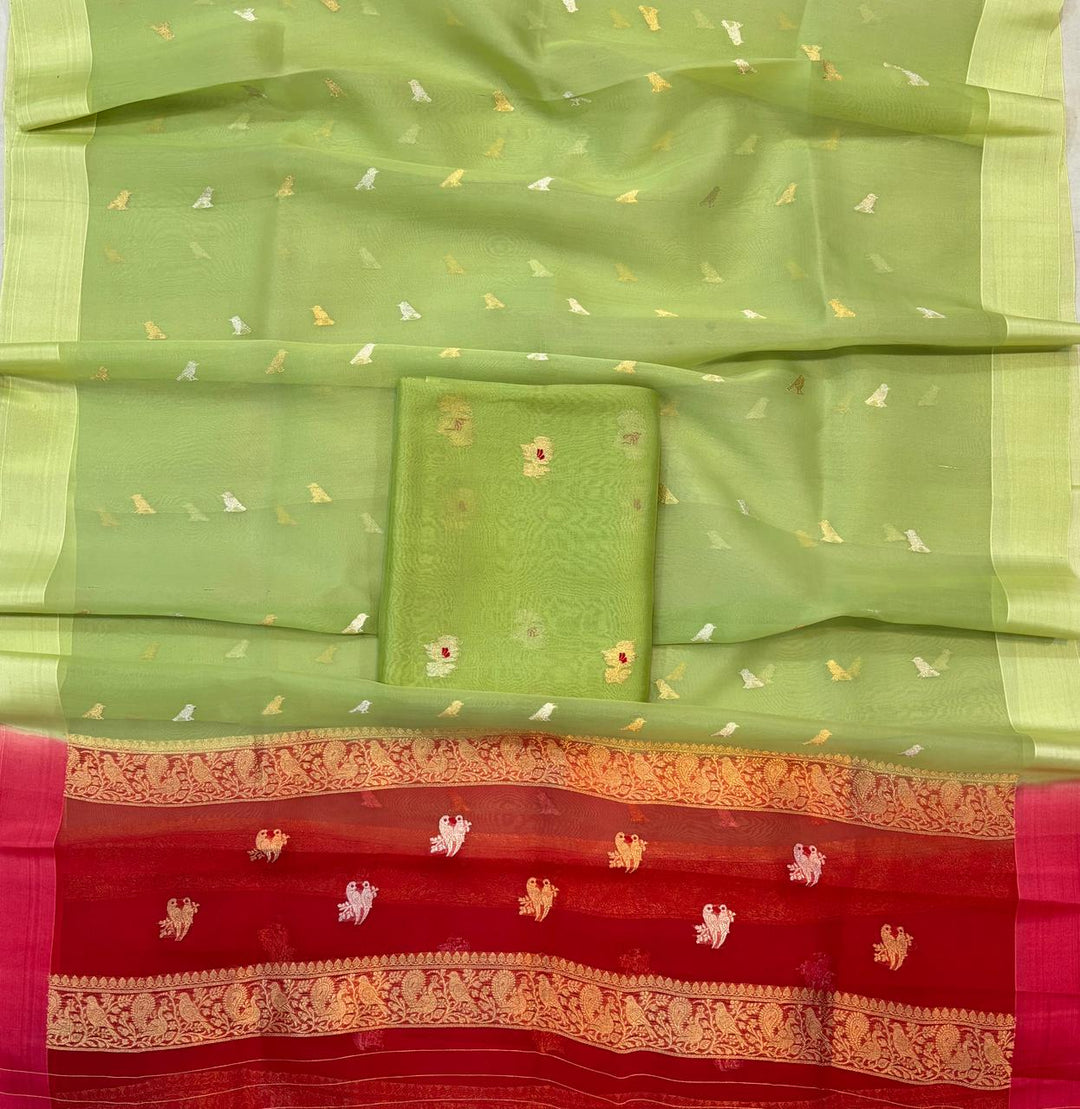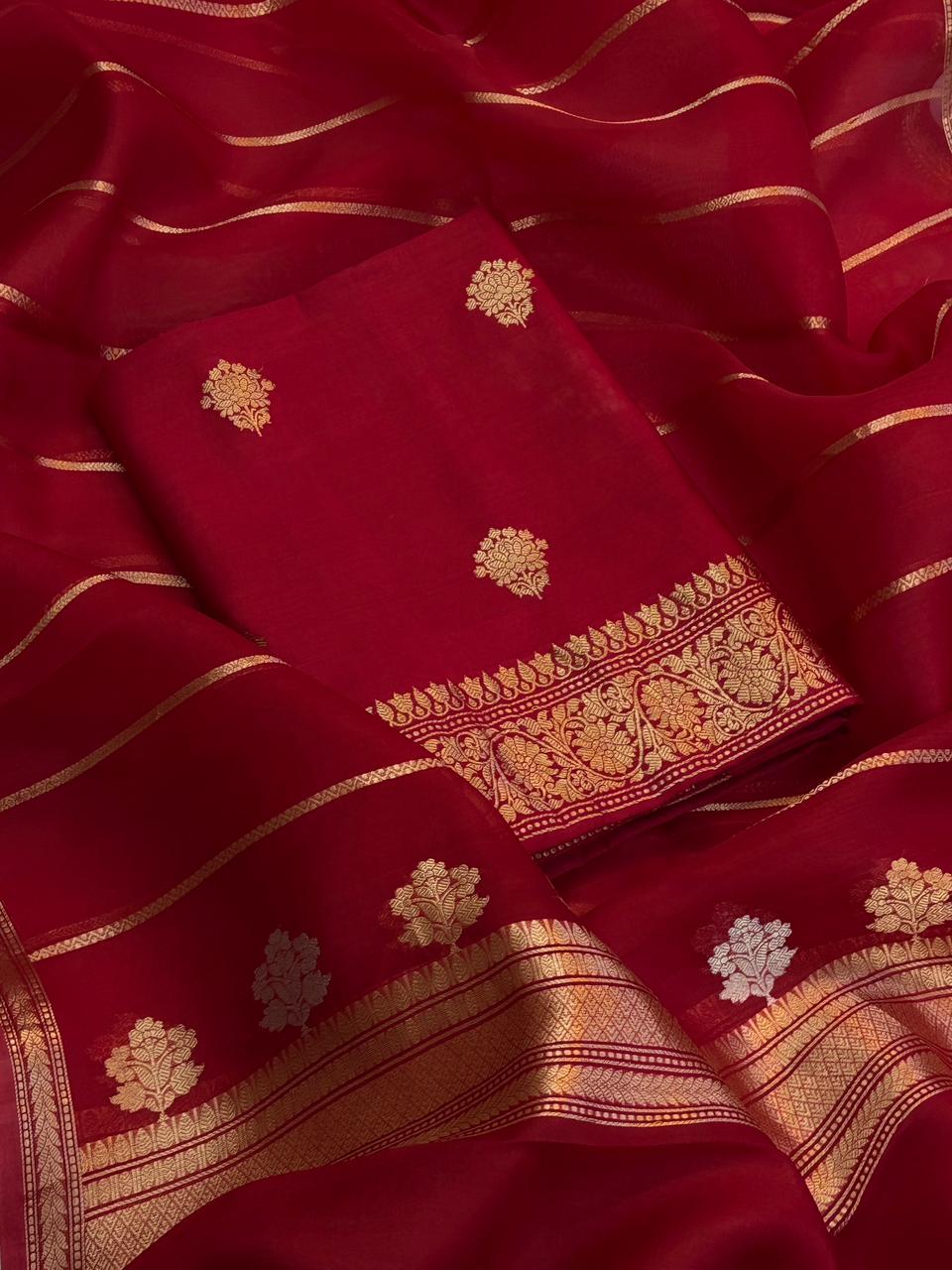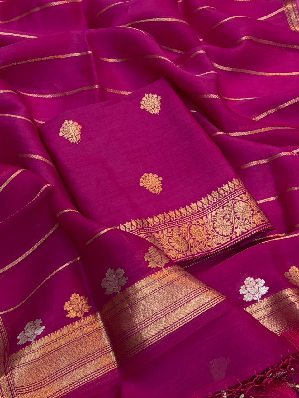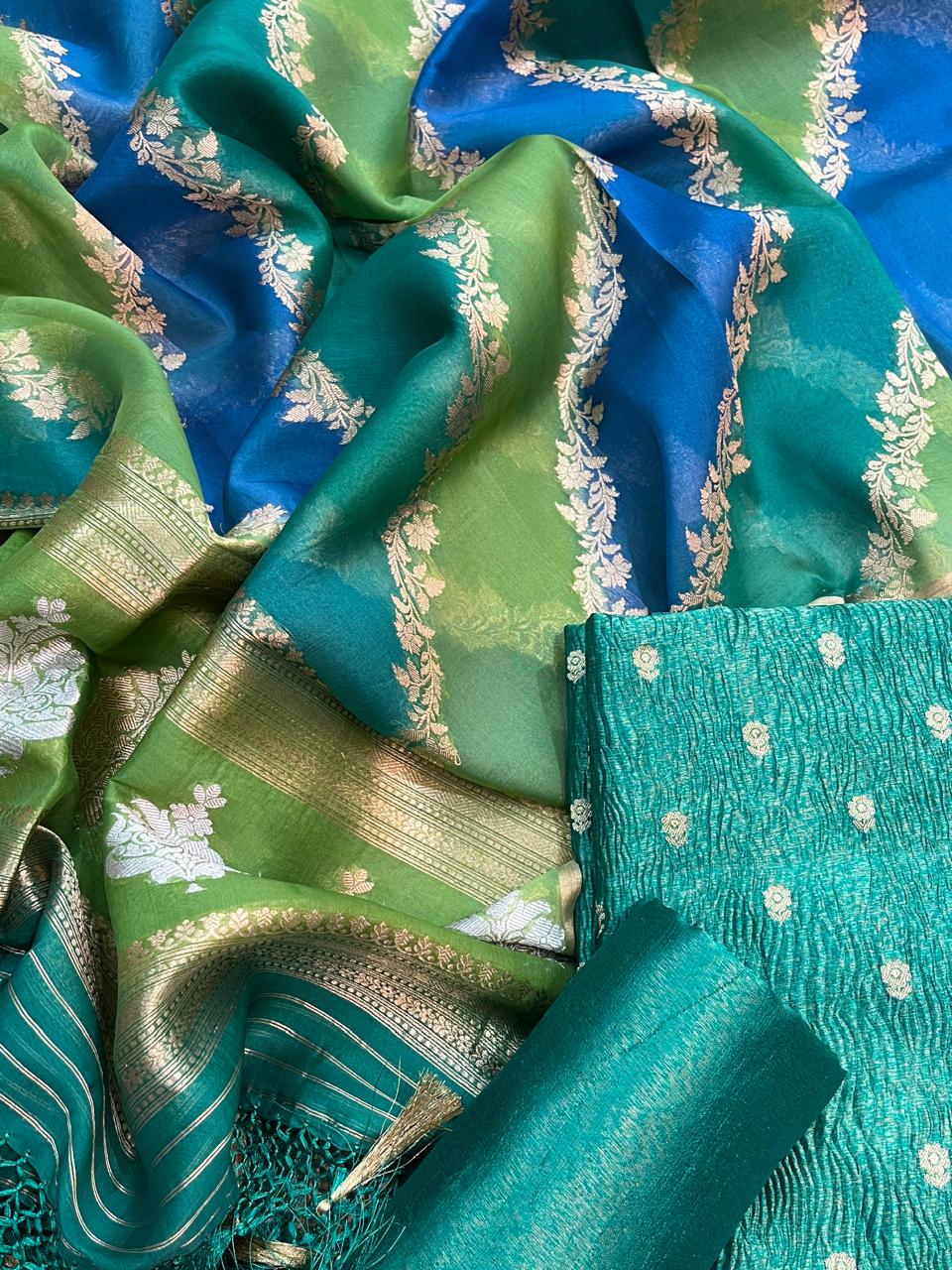 Pure Banarasi Organza Silk Unstitched Suit with Hand weaving