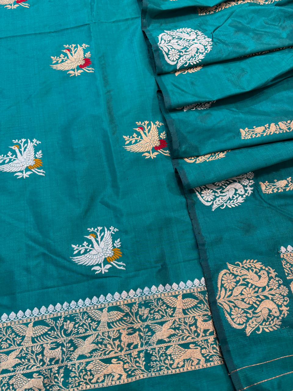 Pure Banarasi Kora Silk Khadwa Work3pc Unstitched Suit with meenakari Work in Green