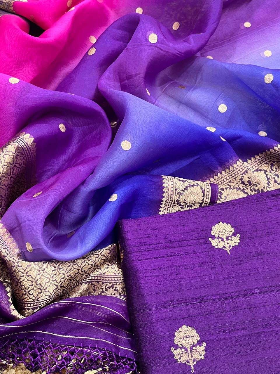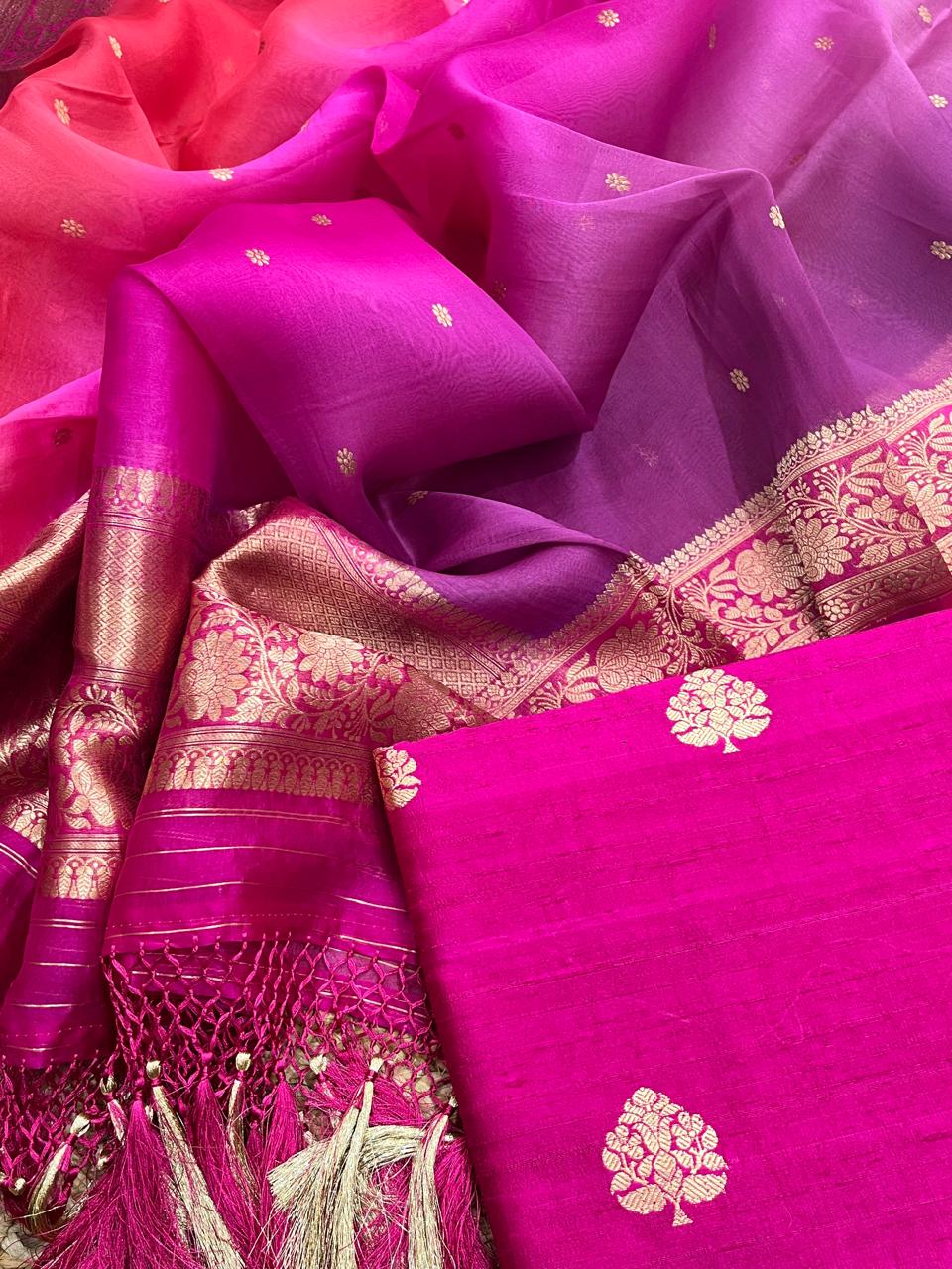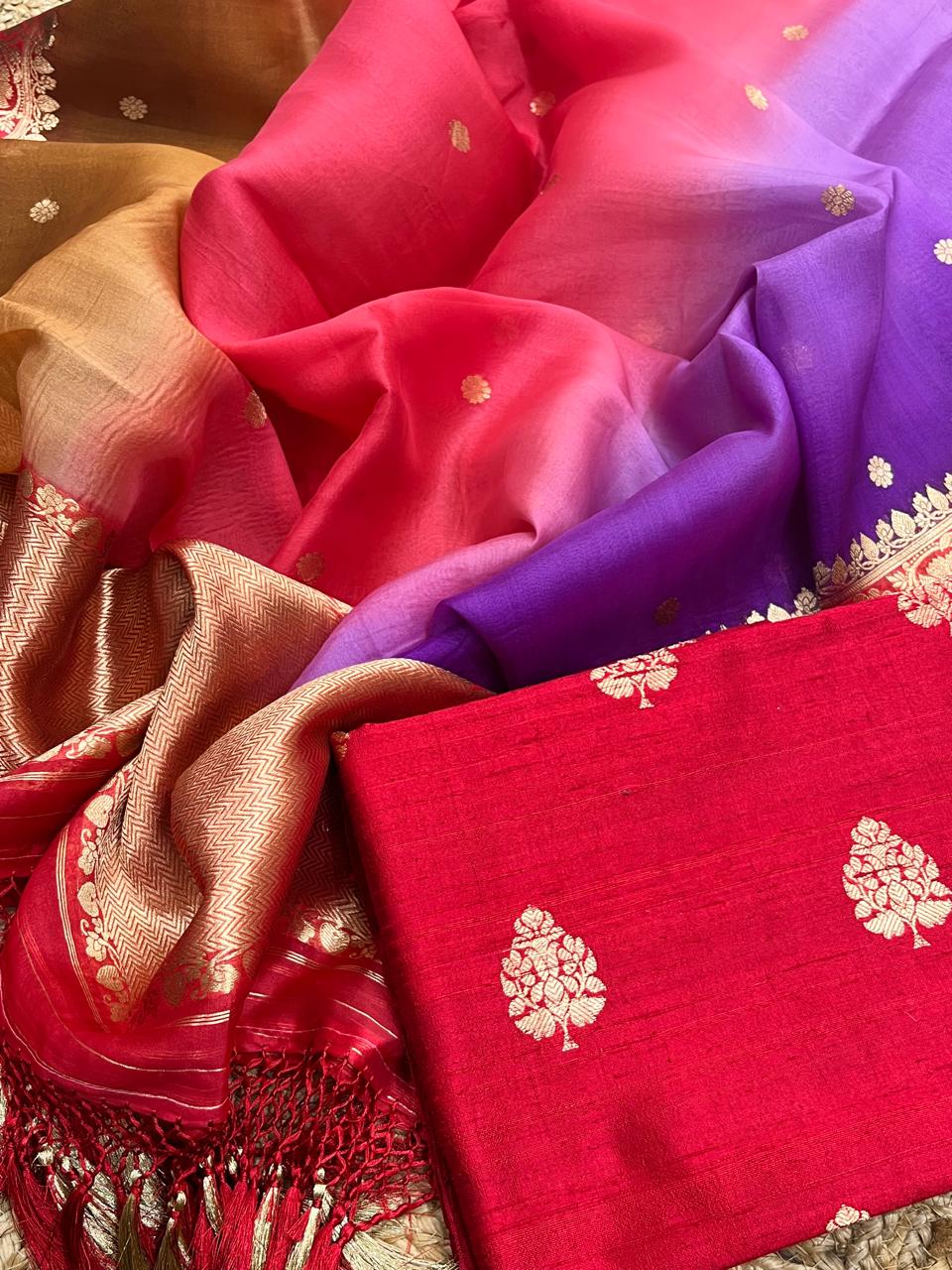 Pure Banarasi Raw Mango Silk Khaddi khadwa Suit with Organza silk Dupatta