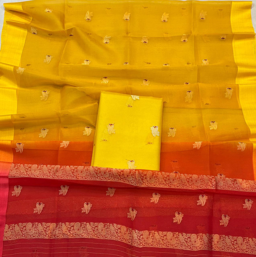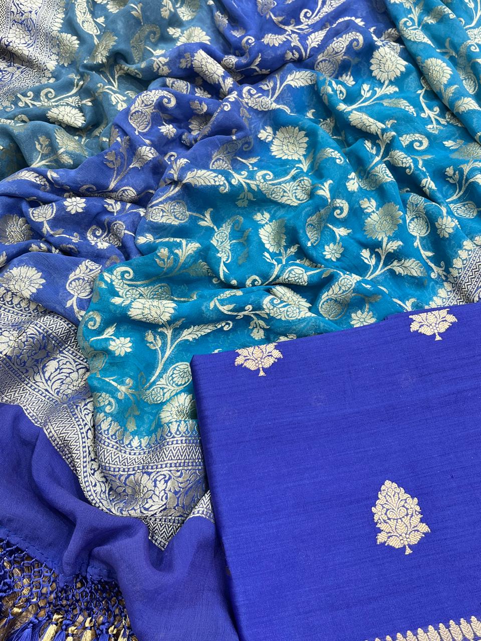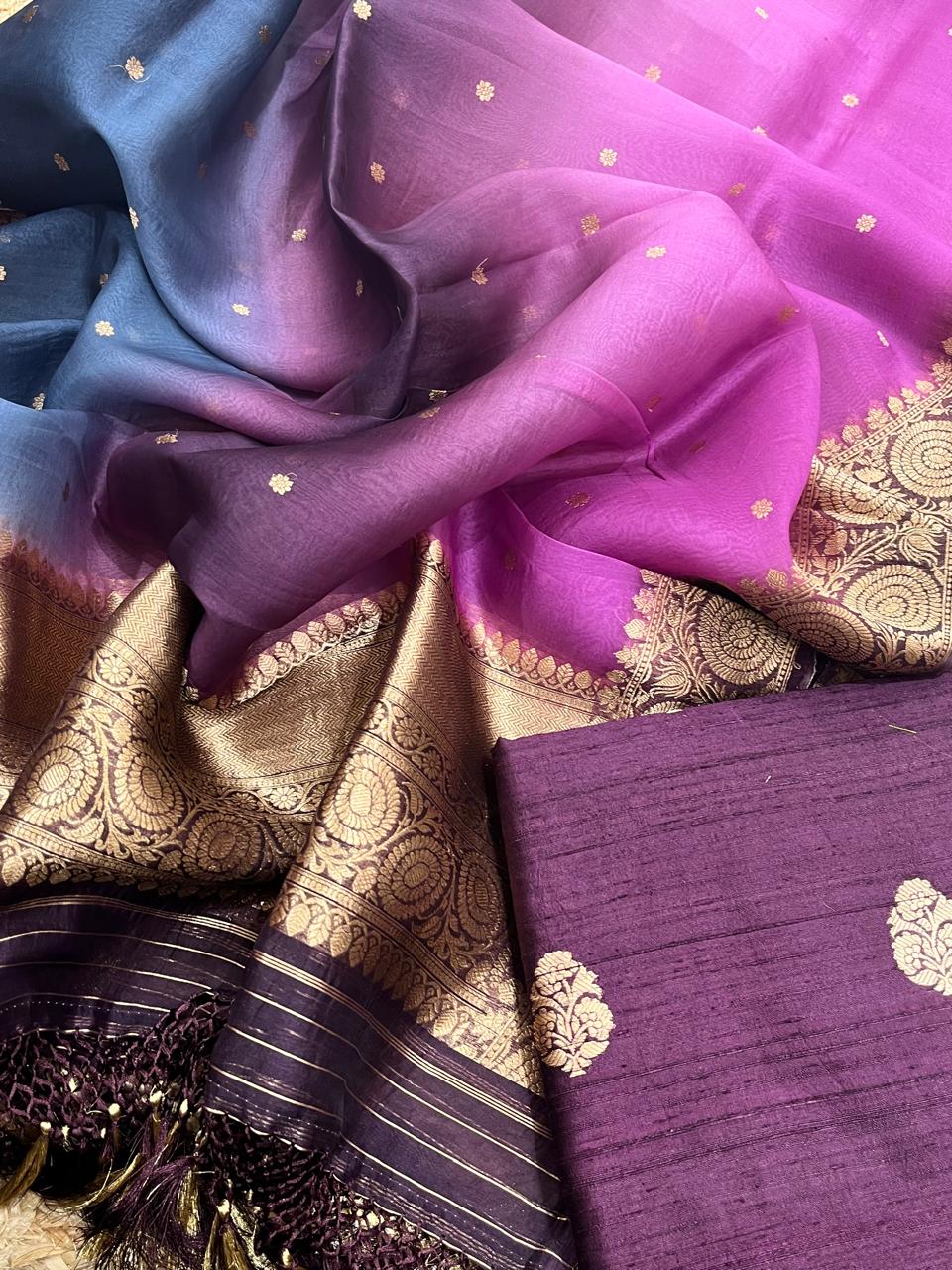 Pure Banarasi Raw Mango Silk Khaddi khadwa Suit with Organza silk Dupatta