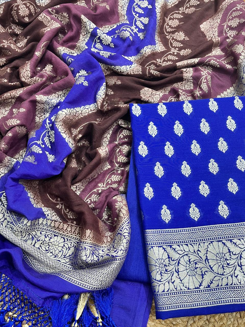 Premium Pure Banarasi Chiniya Silk Unstitched Suit with Kora Silk Dupatta