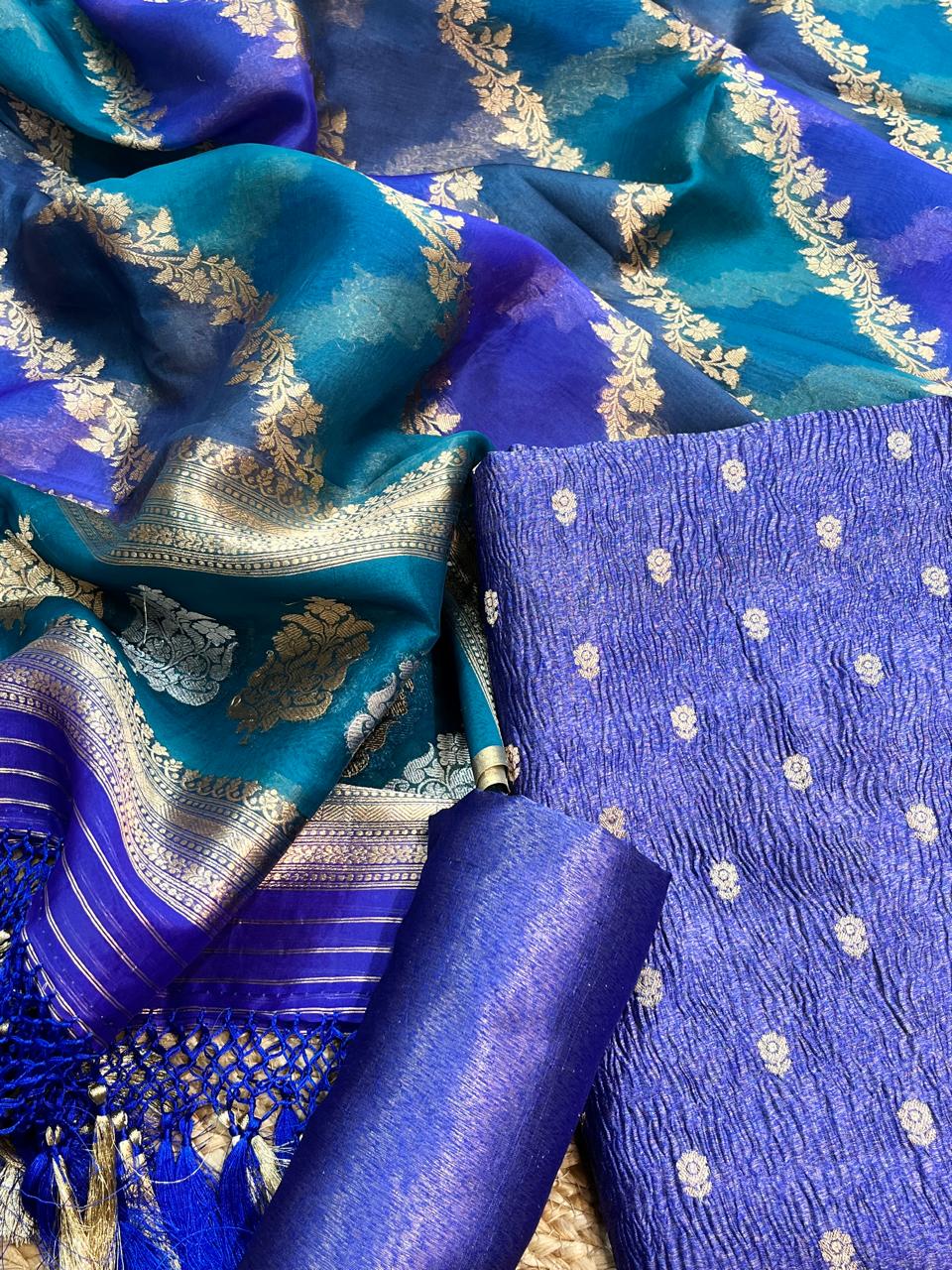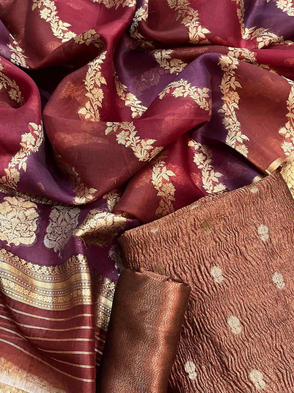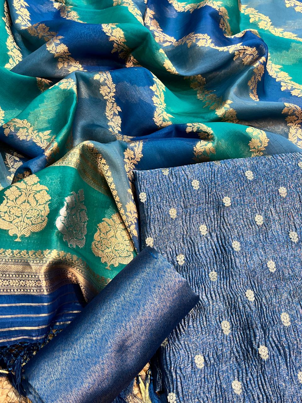 Pure Banarasi Crepe Tissue Silk Unstitched Suit