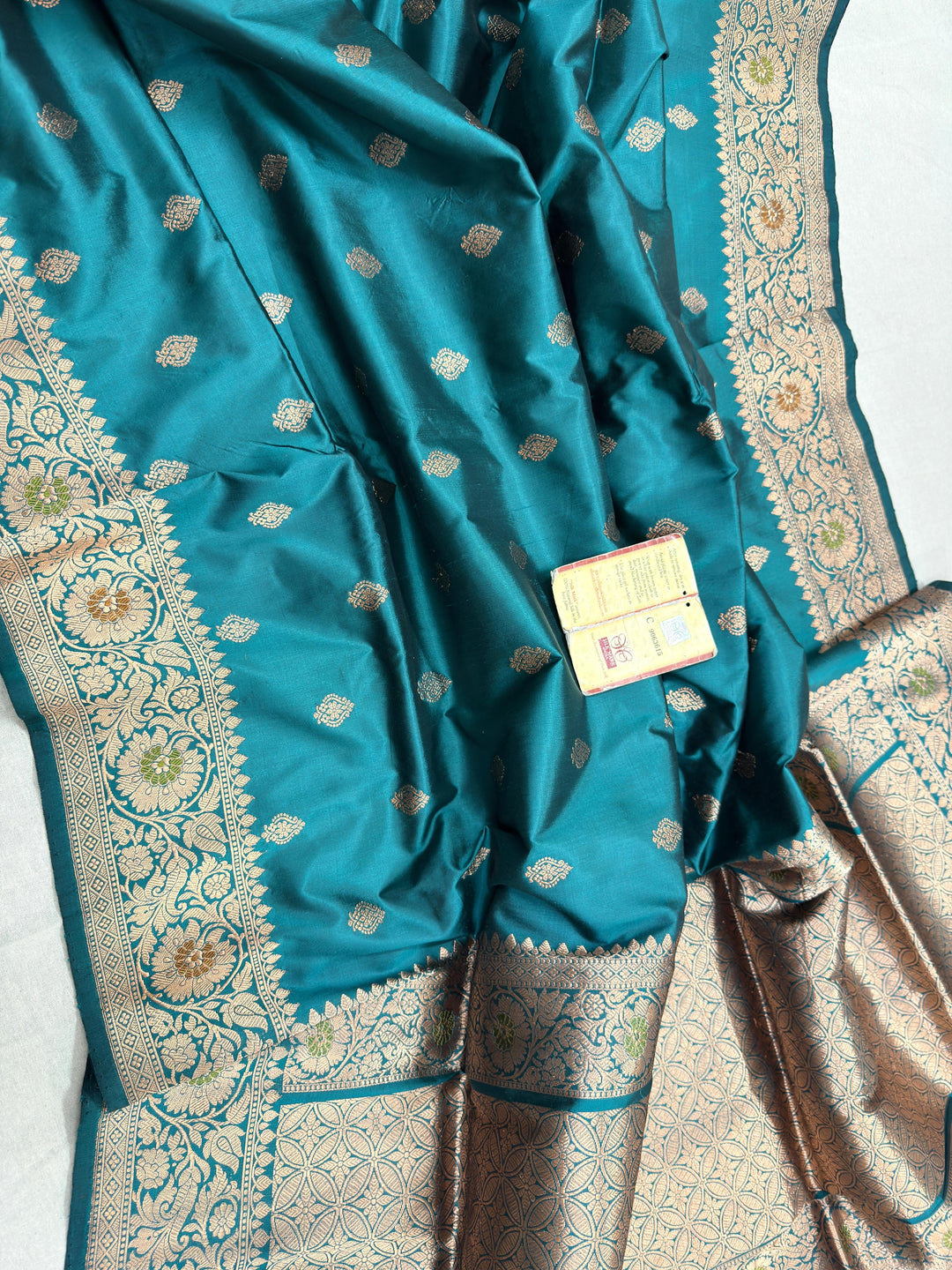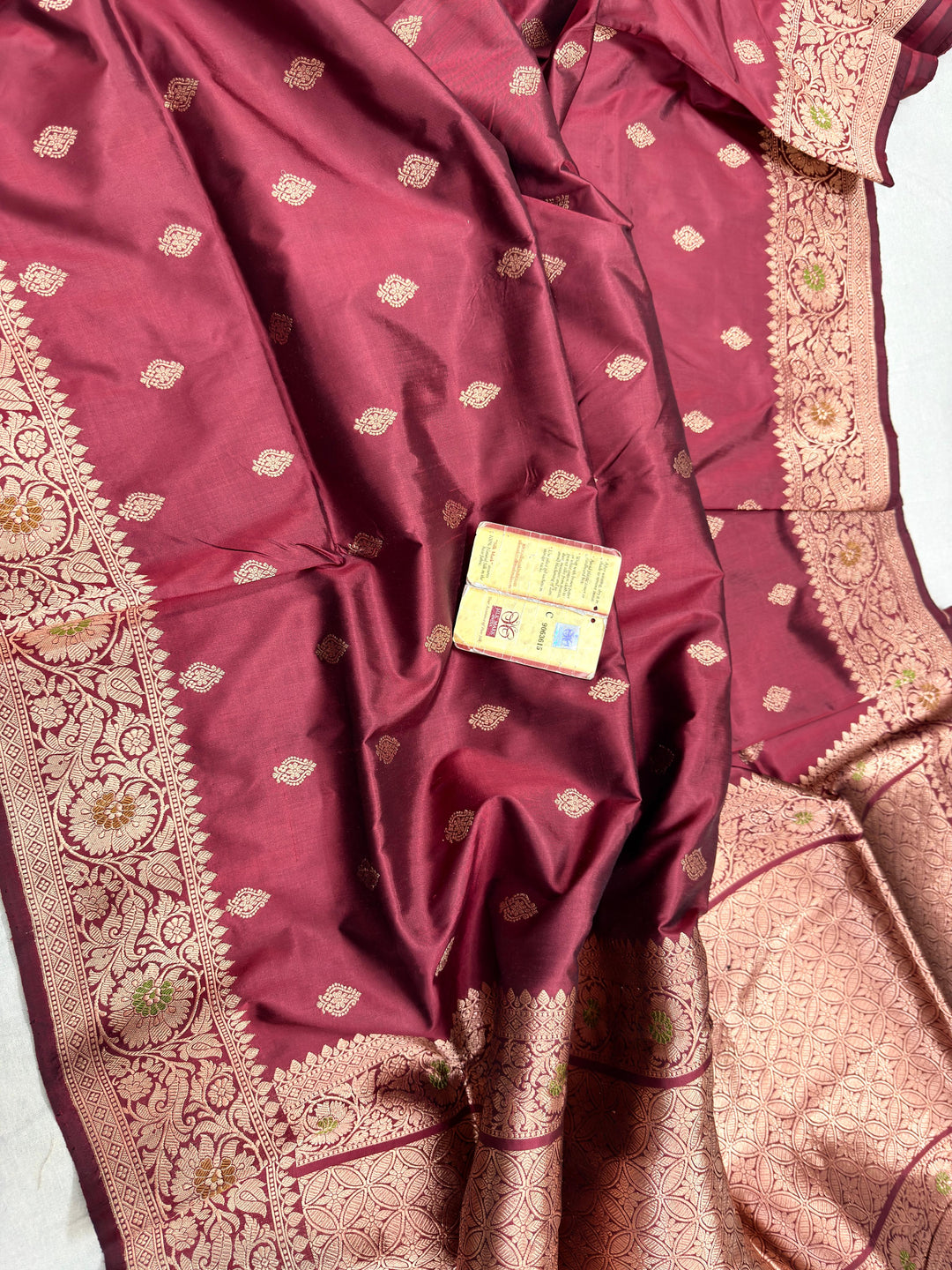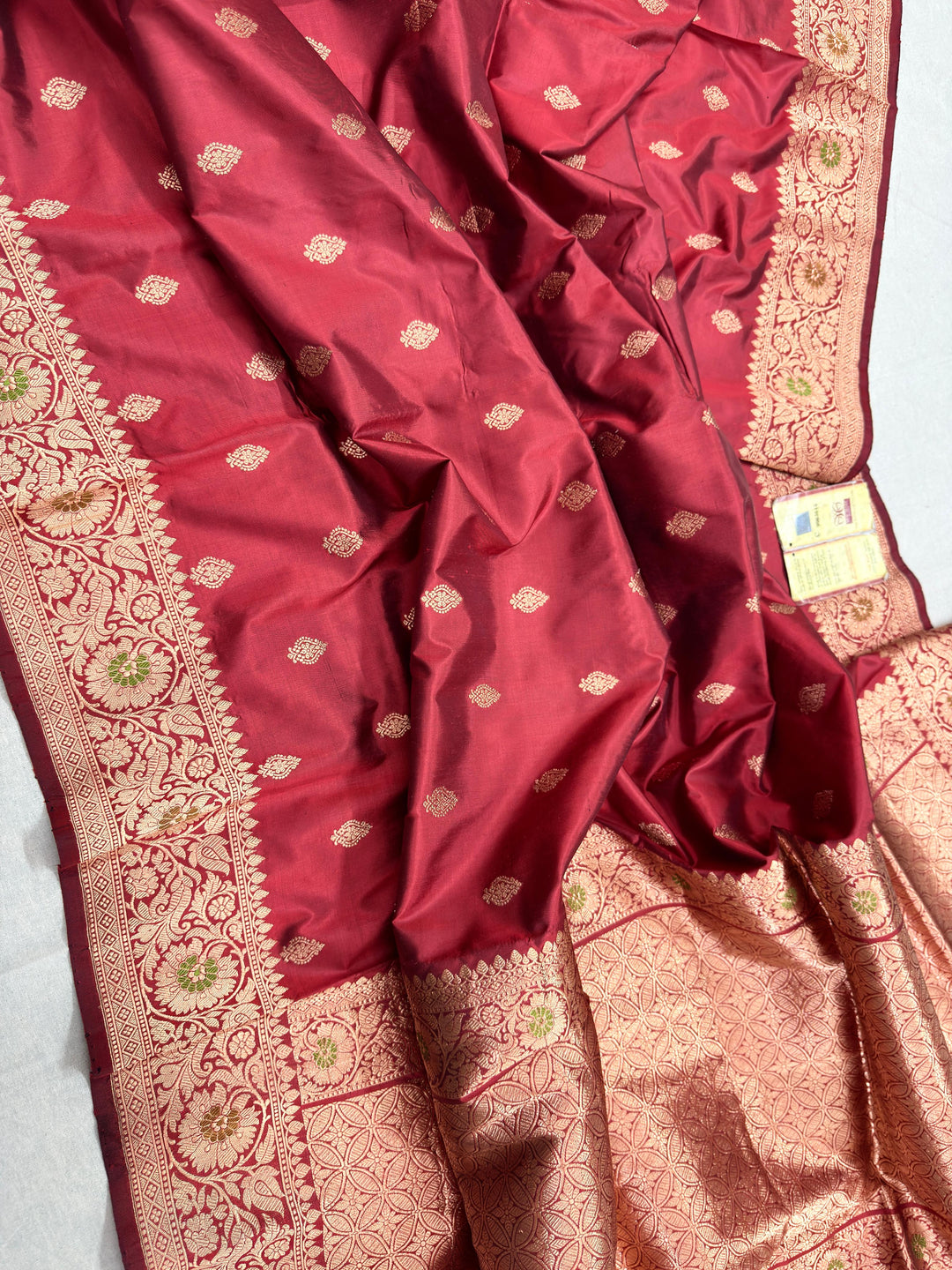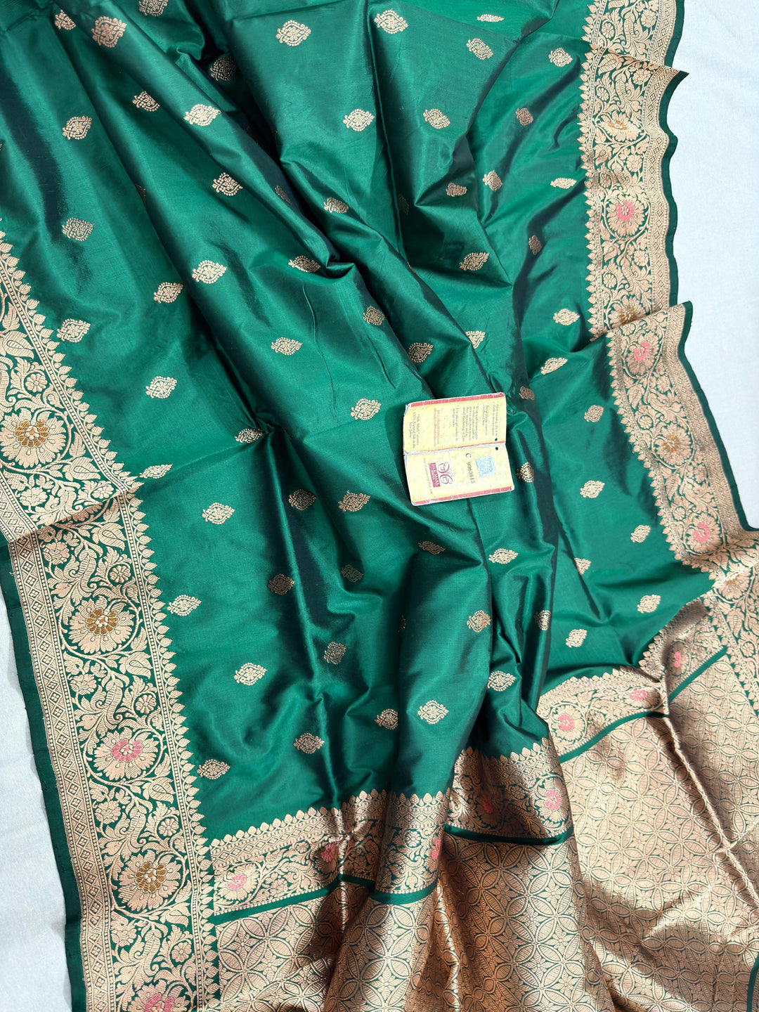 Katan Silk Sarees are a type of pure Banarasi silk sarees that emerged from the holy land of Varanasi. Our range of Katan silk sarees is intricately woven by skilled artisans who have perfected the art over the decades. The gold or silver Zari work lends an entire outfit a touch of opulence and elegance. Not only the beauty but the durability and timeless appeal make a Katan Silk Saree an heirloom and a must-have for every bridal trousseau.
