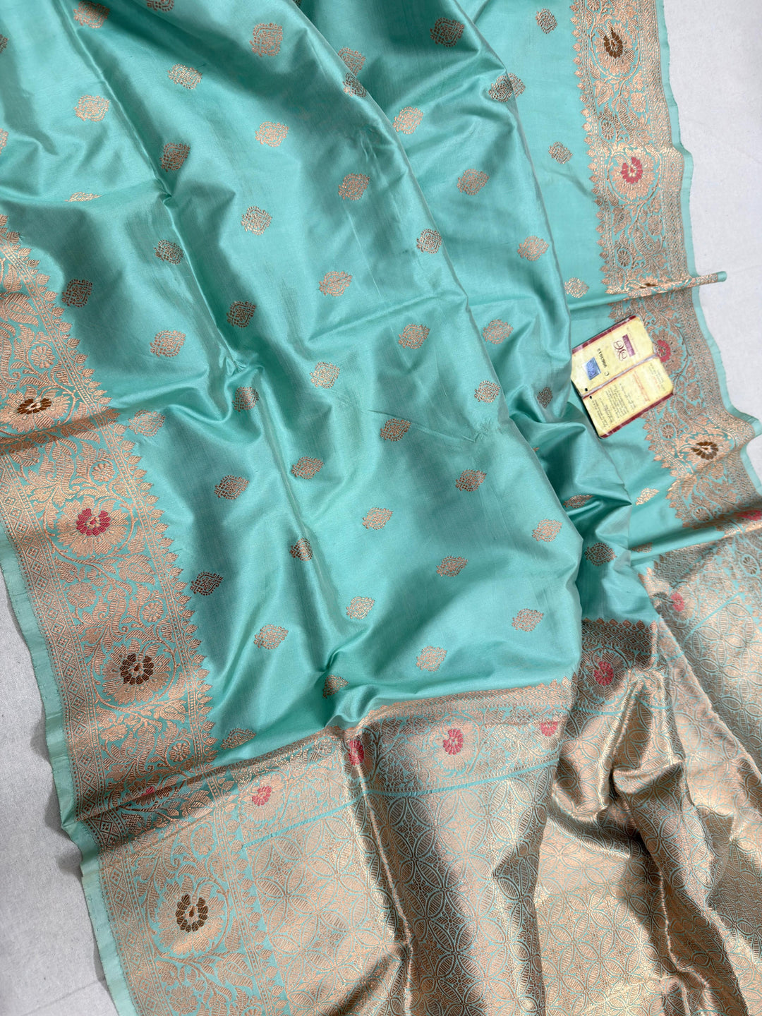 These are one of those Banarasi silk saree that are lustrous and soft in feel and are quite comfortable and elegant at the same time. These are simple but glitzy which makes you look glamorous on every occasion. Katan Silk Sarees are the sarees that are available in almost every form, from plain to heavy Zari work.