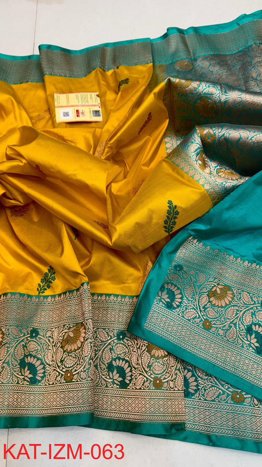 Pure Katan Silk Saree With Antique Zari Work Saree With Meena work.
