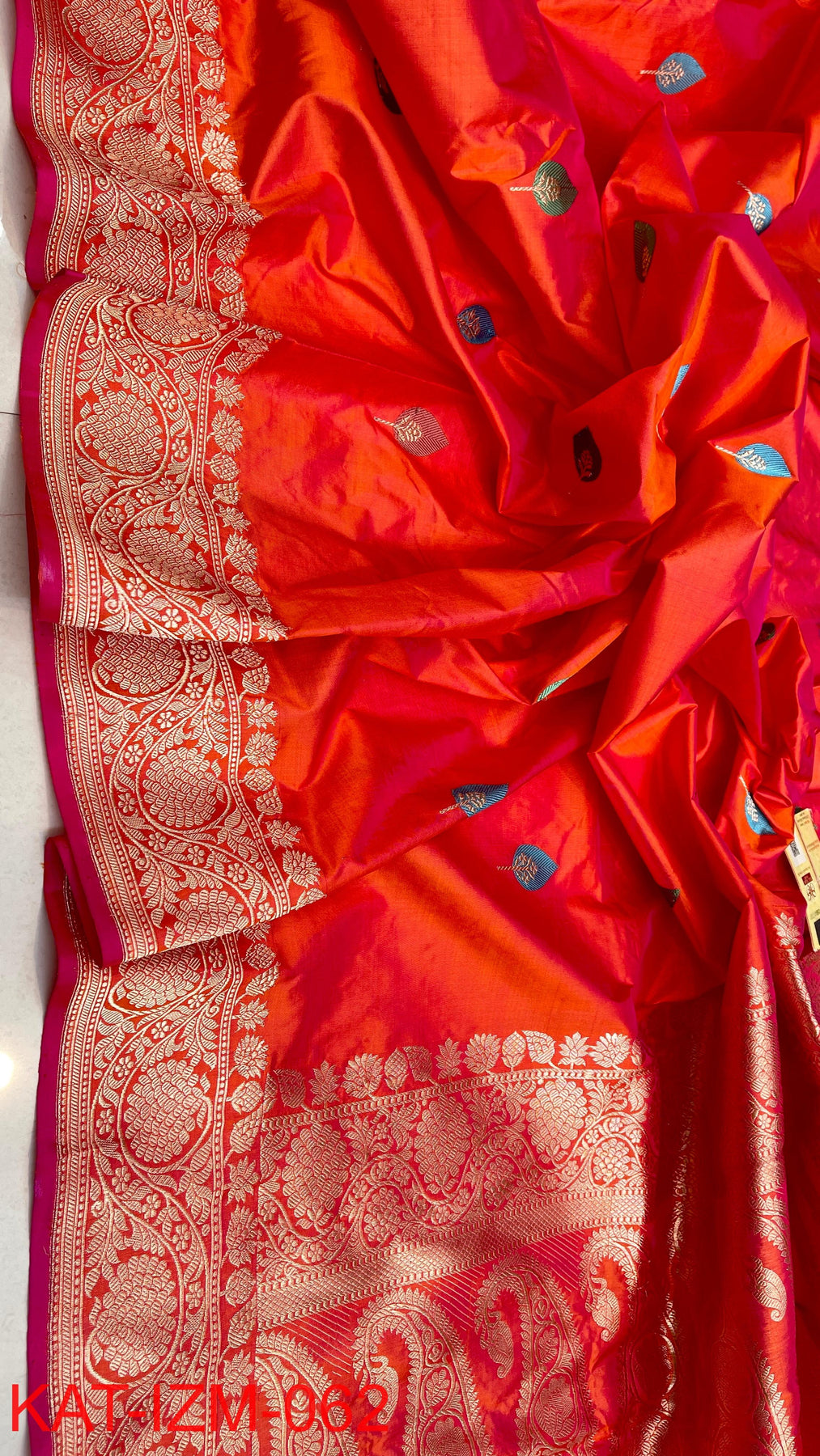 Pure Katan Silk Saree With Antique Zari Work Saree With Meena work.