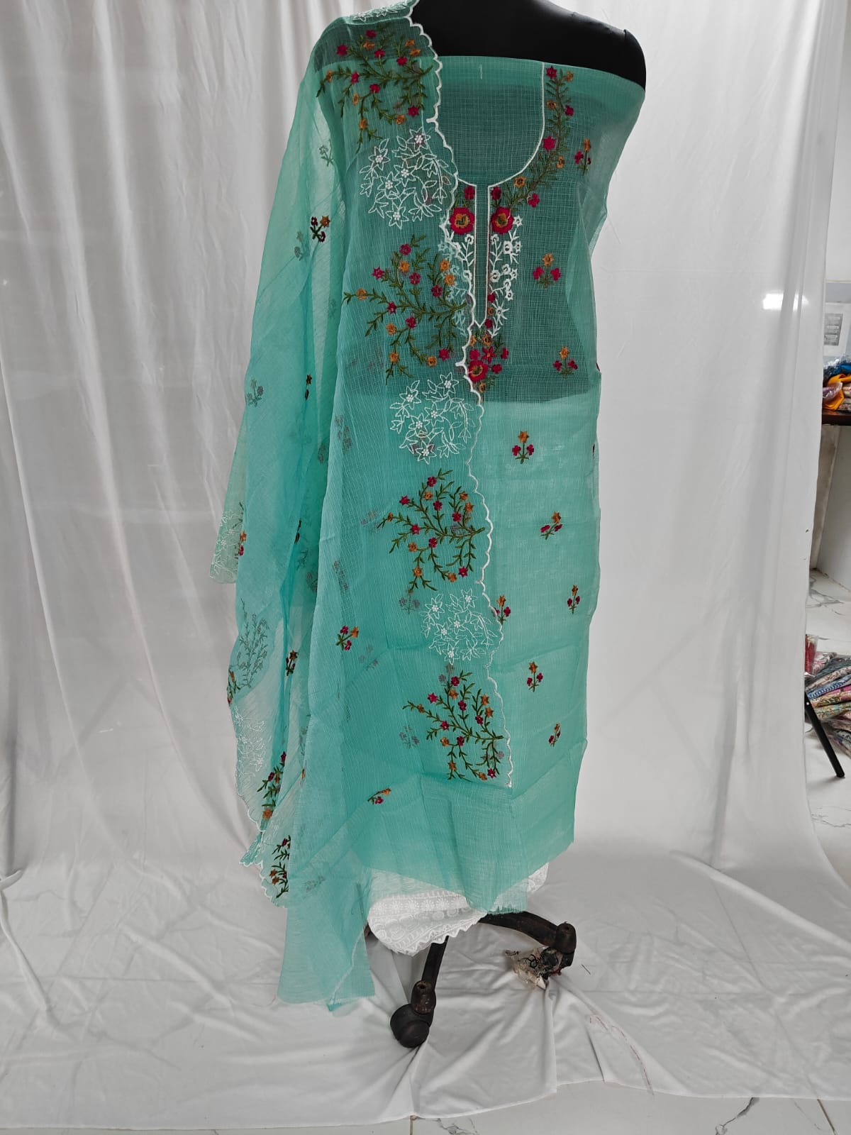 Pure Cotton Kota Doriya Embroidery Unstitched Suit With Dupatta