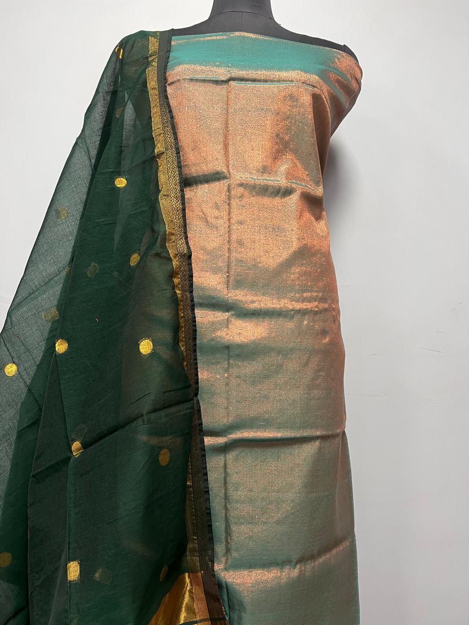 Pure Maheshwari Silk Hand Loom Unstitched Suit.(2pc Set)