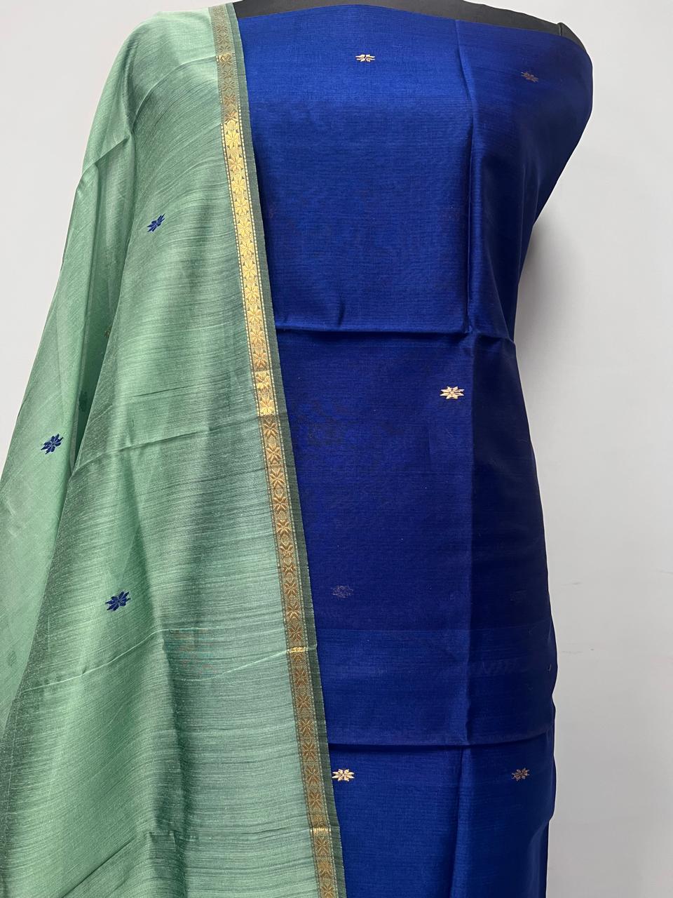Pure Maheshwari Silk Hand Loom Unstitched Suit.(2pc Set)