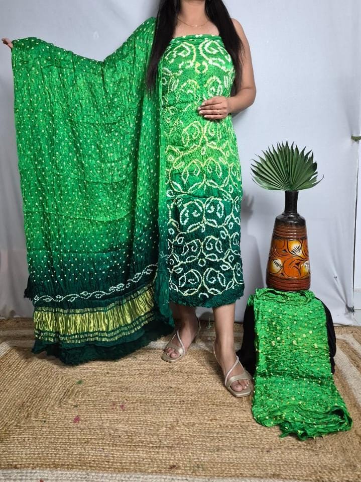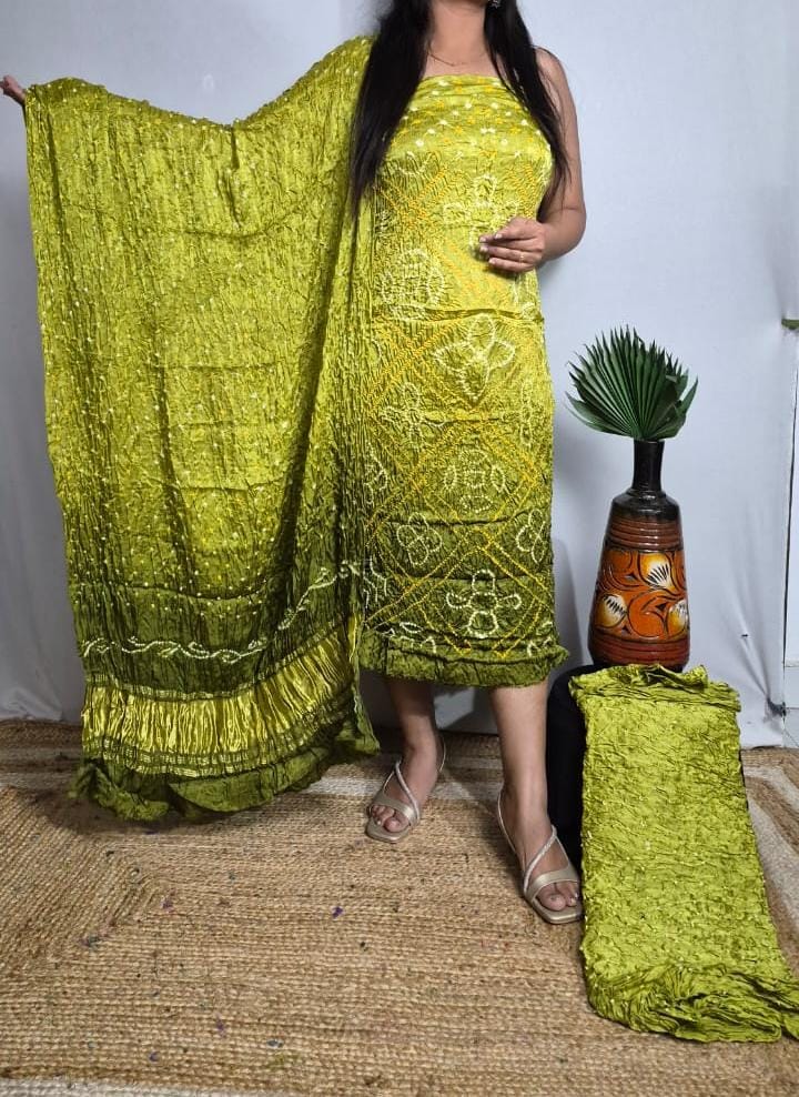 Pure Modal Silk Unstitched Suit with Lagdi Patta Dupatta in GREEN