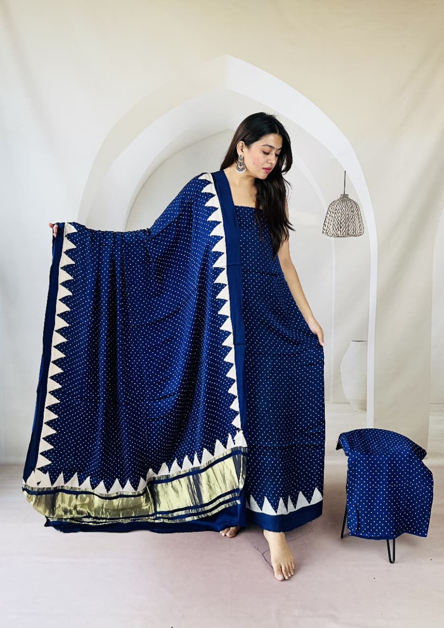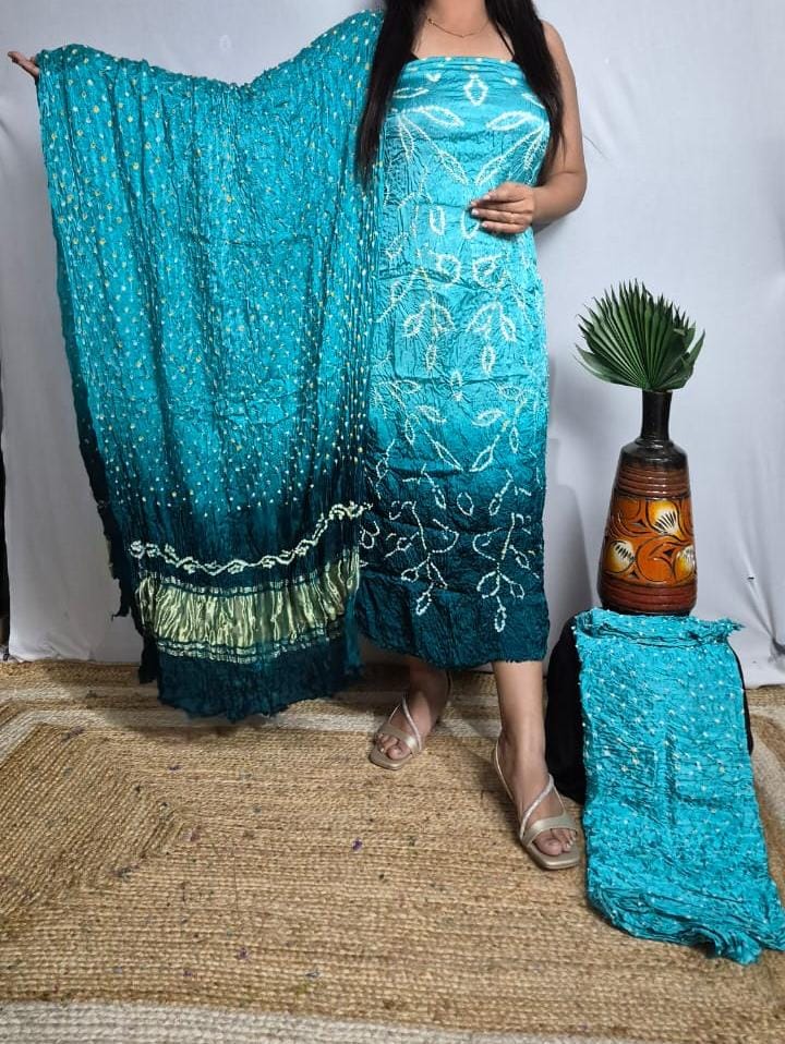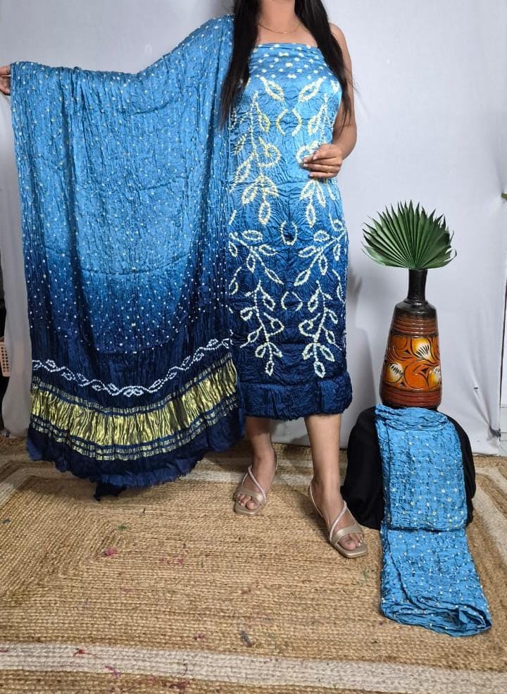 Pure Modal Silk Unstitched Suit with Lagdi Patta Dupatta in BLUE
