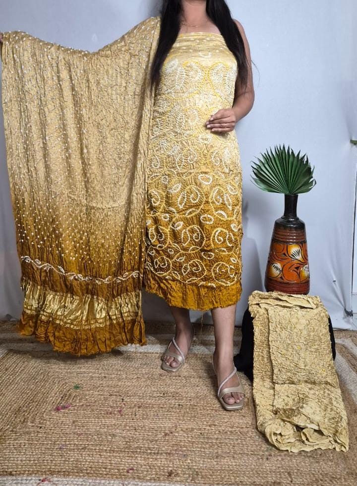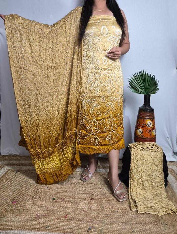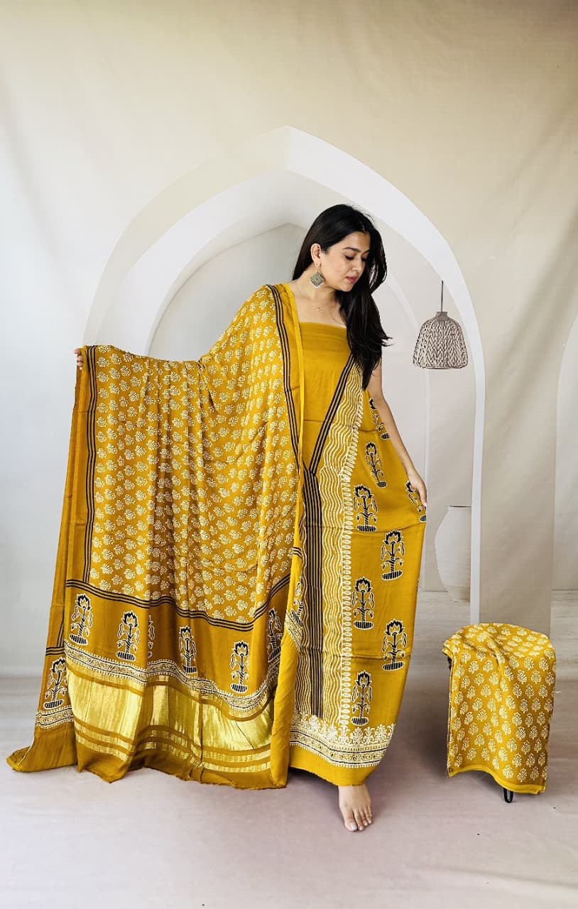 Pure Modal Silk Unstitched Suit with Lagdi Patta Dupatta in MUSTARD