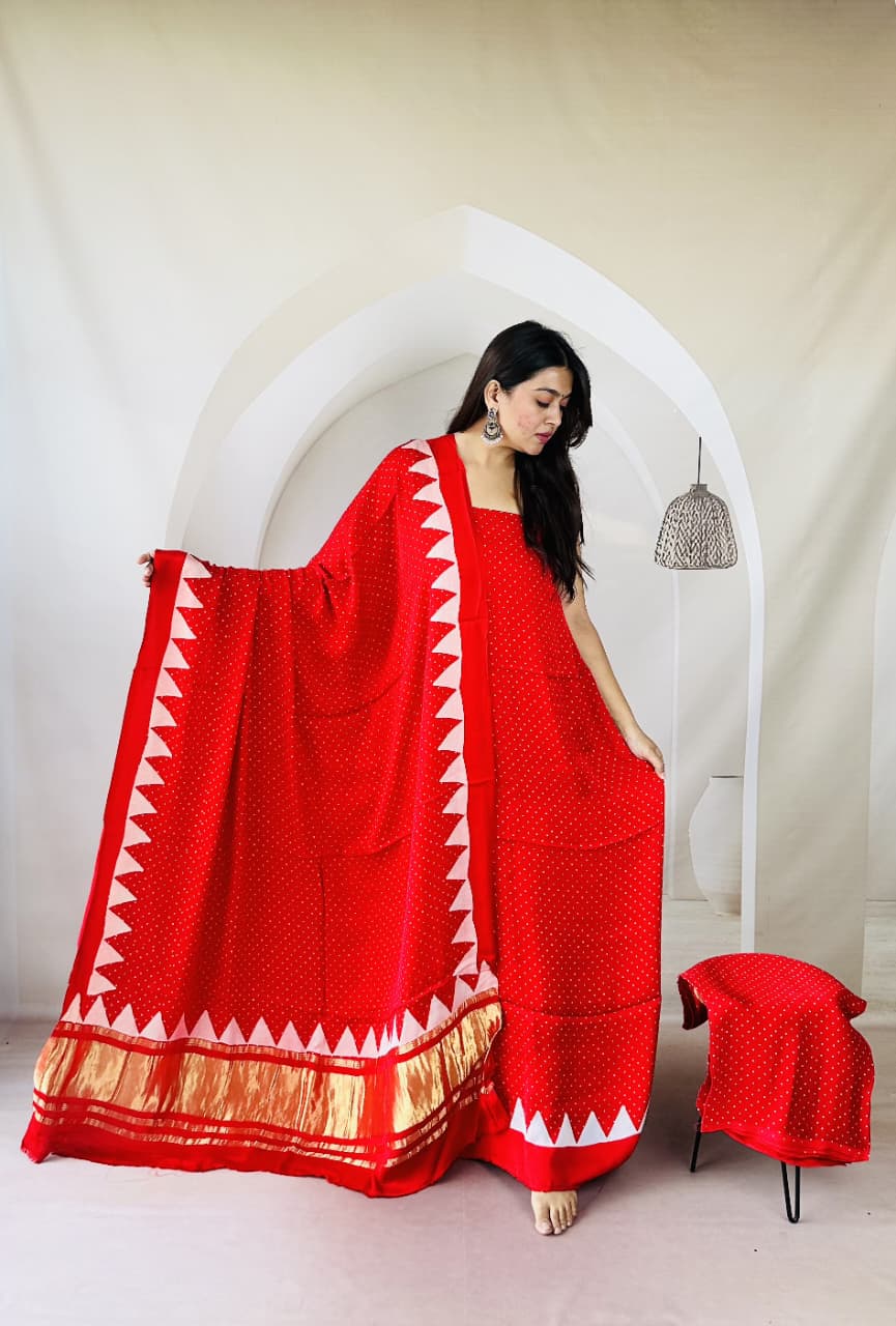 Pure Modal Silk Unstitched Suit with Lagdi Patta Dupatta in RED