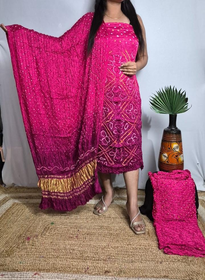 Pure Modal Silk Unstitched Suit with Lagdi Patta Dupatta in MAROON