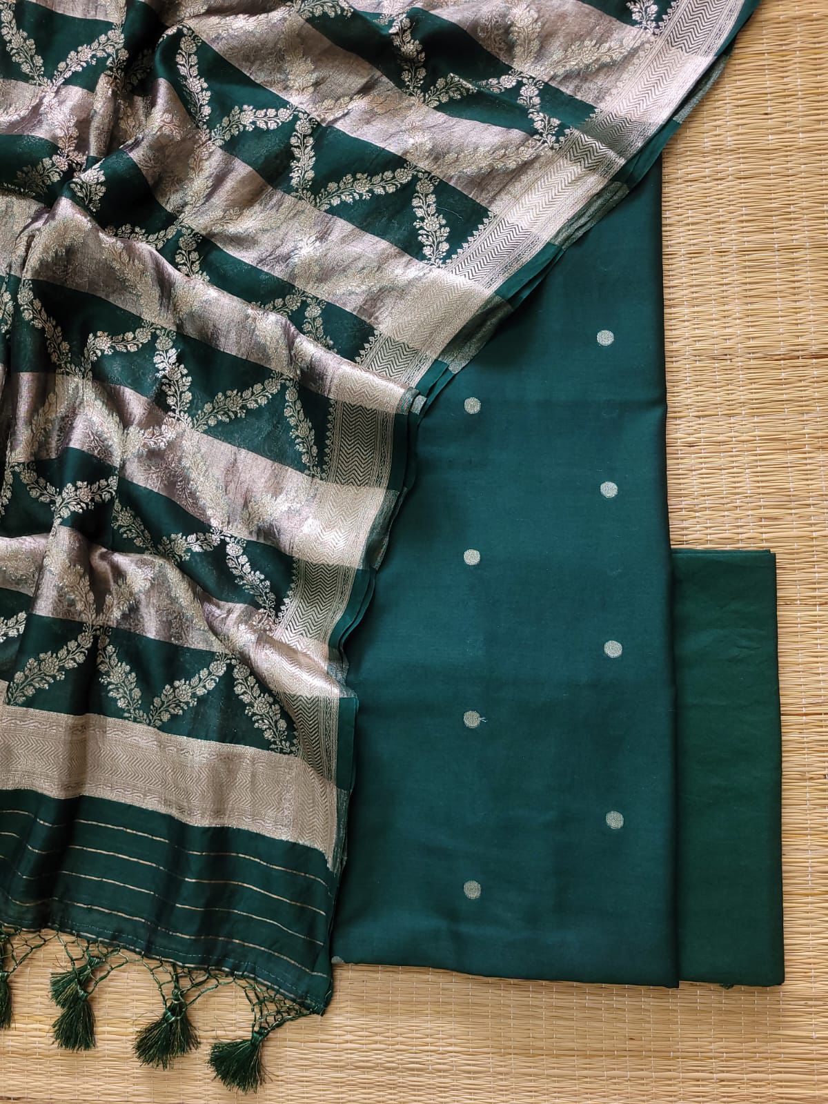 Pure Banarasi Chanderi SIlk Unstitched Suit With Tissue Zari Patta Chanderi Dupatta