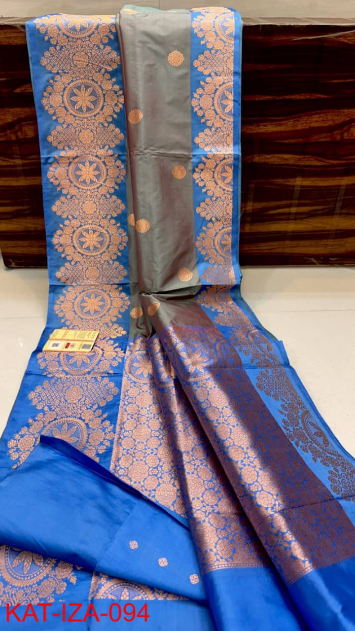 Pure Banarasi Katan by Katan Silk Saree with Kadhwa Buti Work and konia Border