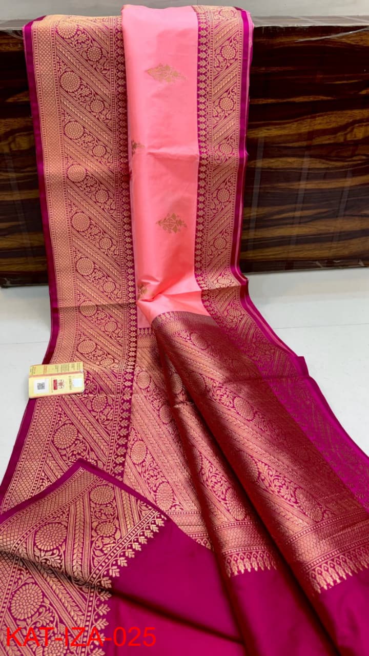 Pure Banarasi Handloom Katan Silk Saree With Zari Work Border.