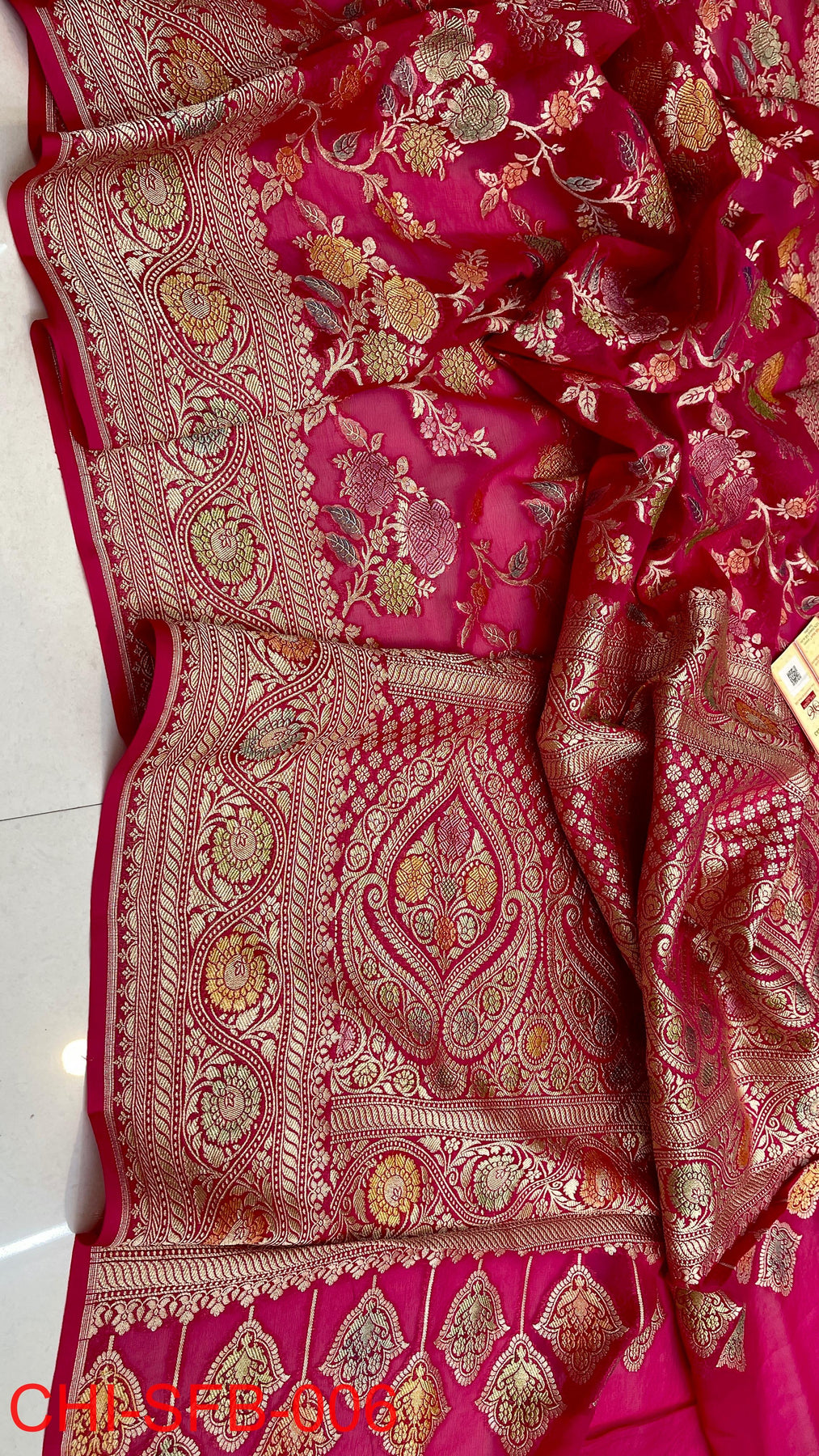 Pure Banarasi Handloom Khaddi Georgette Silk Water Zari Work Saree .| NEW EDITION |